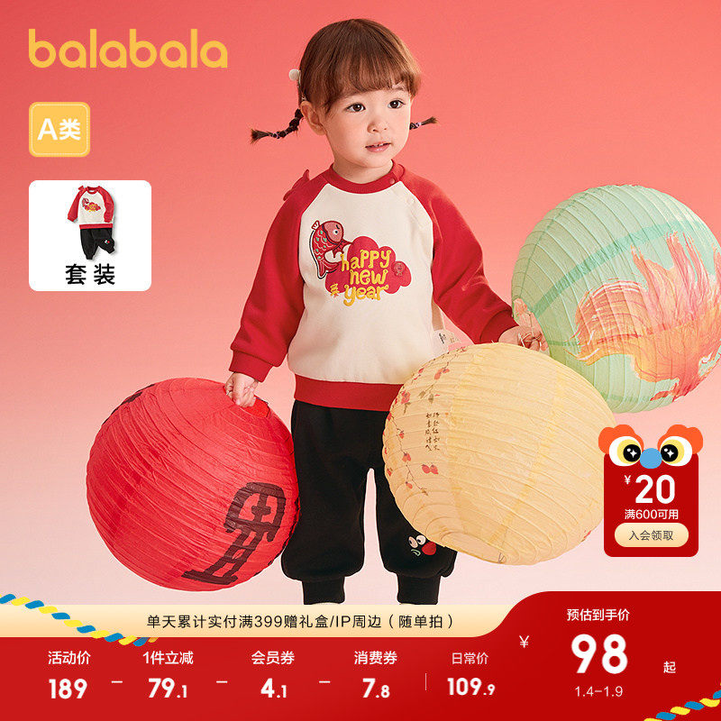 巴拉巴拉童装宝宝周岁礼服套装2025款加绒两件套春秋红色拜年服潮