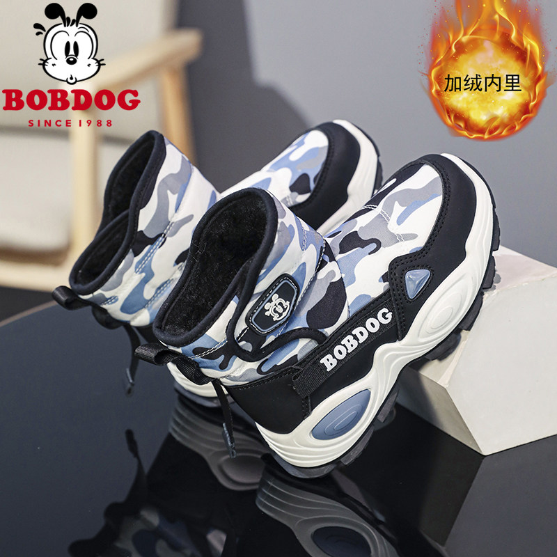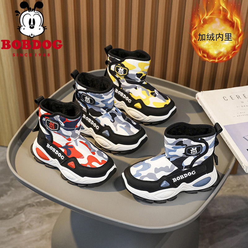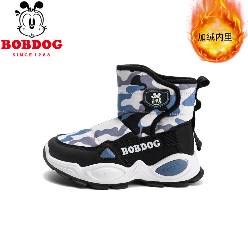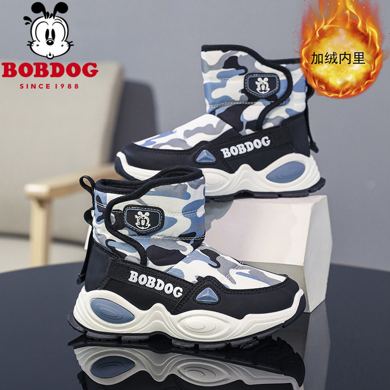 巴布豆儿童雪地靴2025秋冬加绒保暖棉鞋男童东北大棉靴中大童防滑