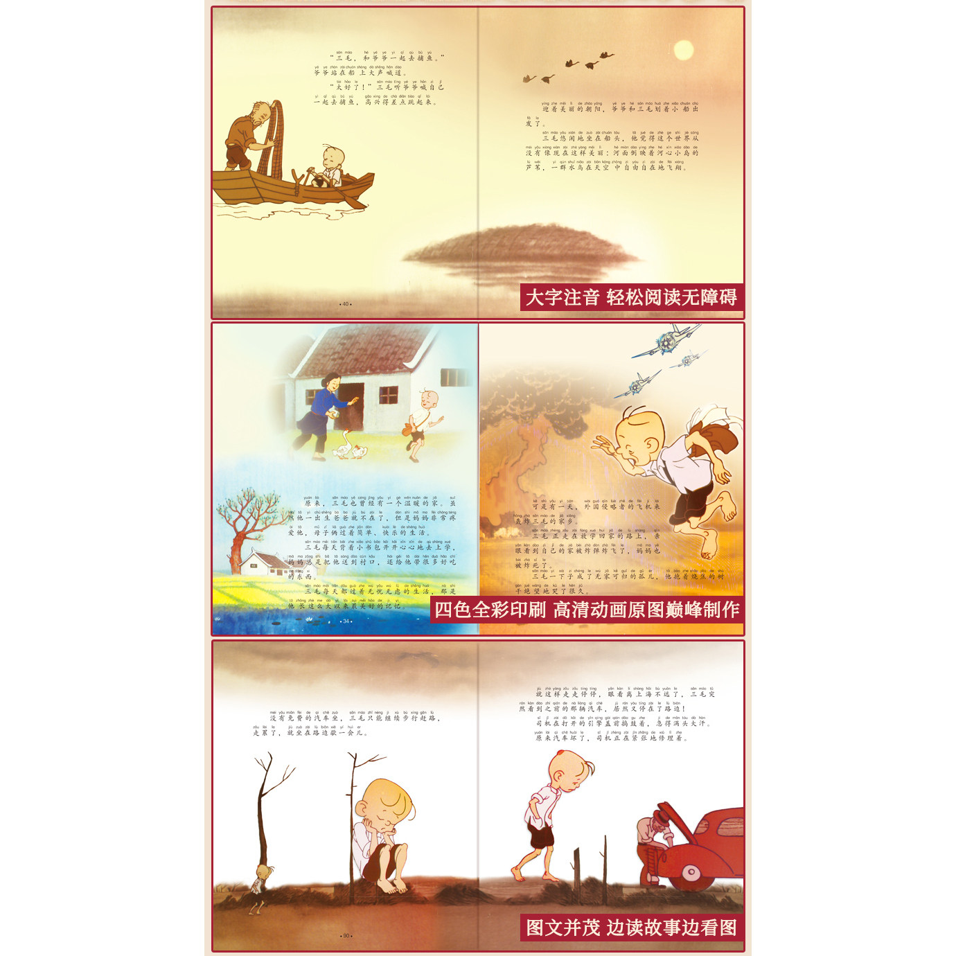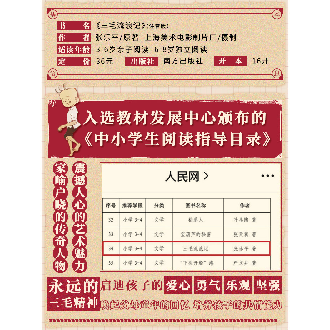 注音版三毛流浪记三毛治愈手账中国经典动画作品张乐平著小学生课外阅读书籍故事书一年级二年级三6-12周岁儿童读物全集