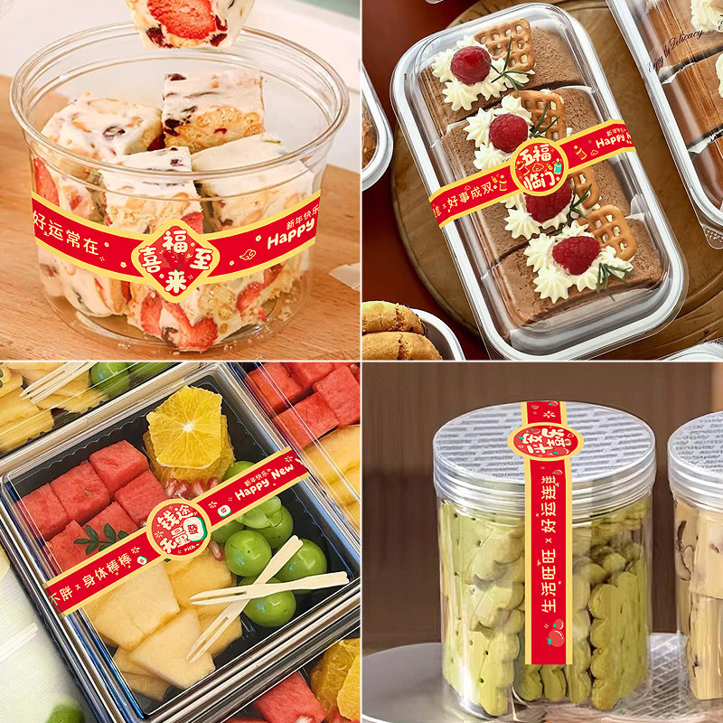 元旦新年可爱卡通礼物腰封长条封口贴烘焙零食饼干装饰祝福贴纸2026马年幼儿园儿童小学生奖品赠品伴手礼贴画
