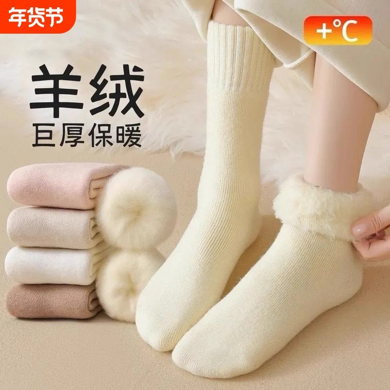 厚羊绒袜子女秋冬款保暖中筒袜加绒加厚地板袜冬天羊毛月子袜毛绒