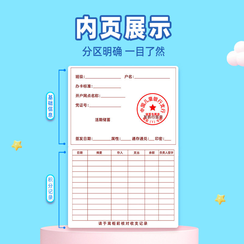 心愿存折小学生奖励孩子的积分卡阅读存折记录本儿童印章收集本贴纸集小红花幼儿园家庭学习读书打卡登记册