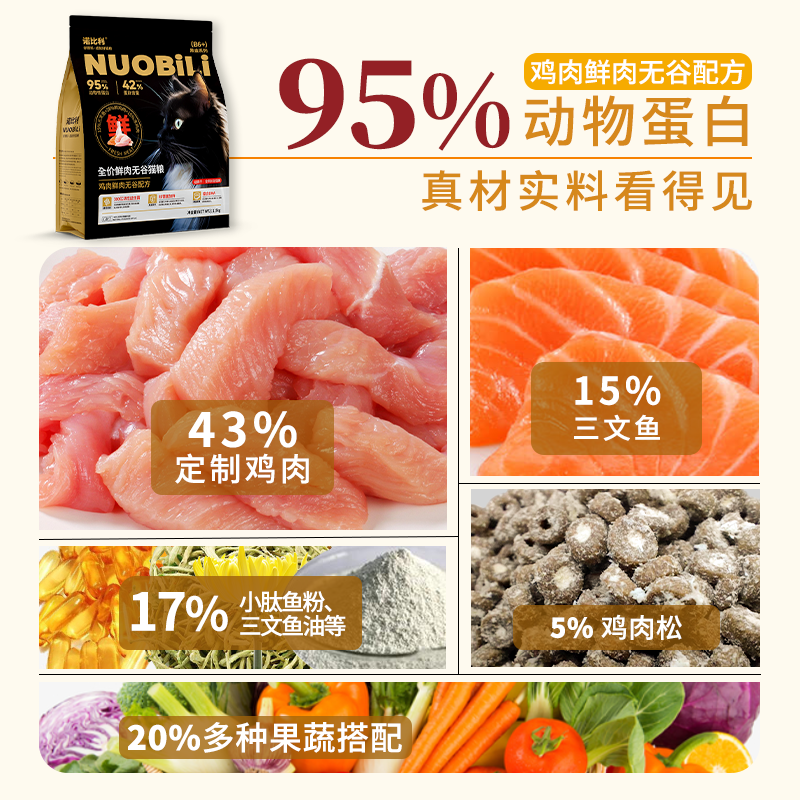 诺比利全价猫粮成猫粮乳鸽兔肉夹心试吃烘焙鱼油美毛幼猫鸡肉酶解