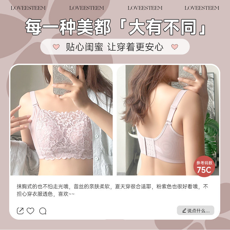 大胸显小抹胸内衣女薄款性感蕾丝防走光无钢圈收副乳文胸MA70376B