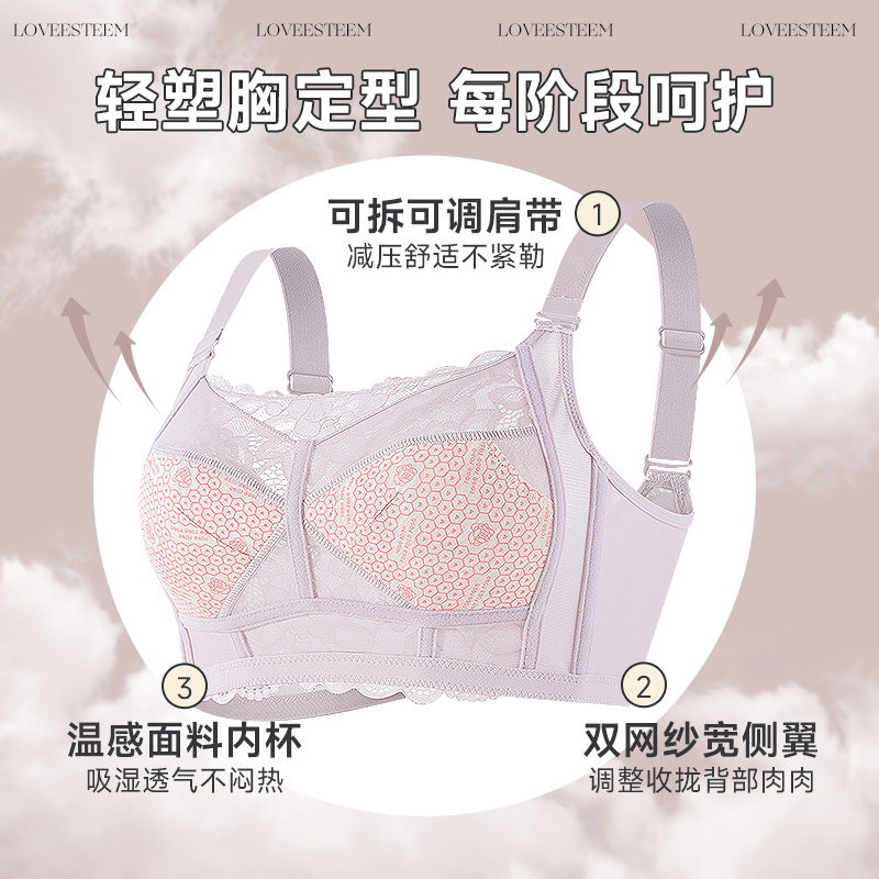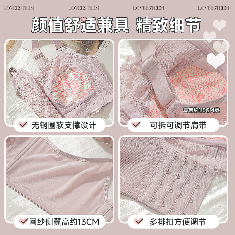 润微提拉内衣女大胸显小无痕提拉防下垂聚拢收副乳胸罩爆款文胸