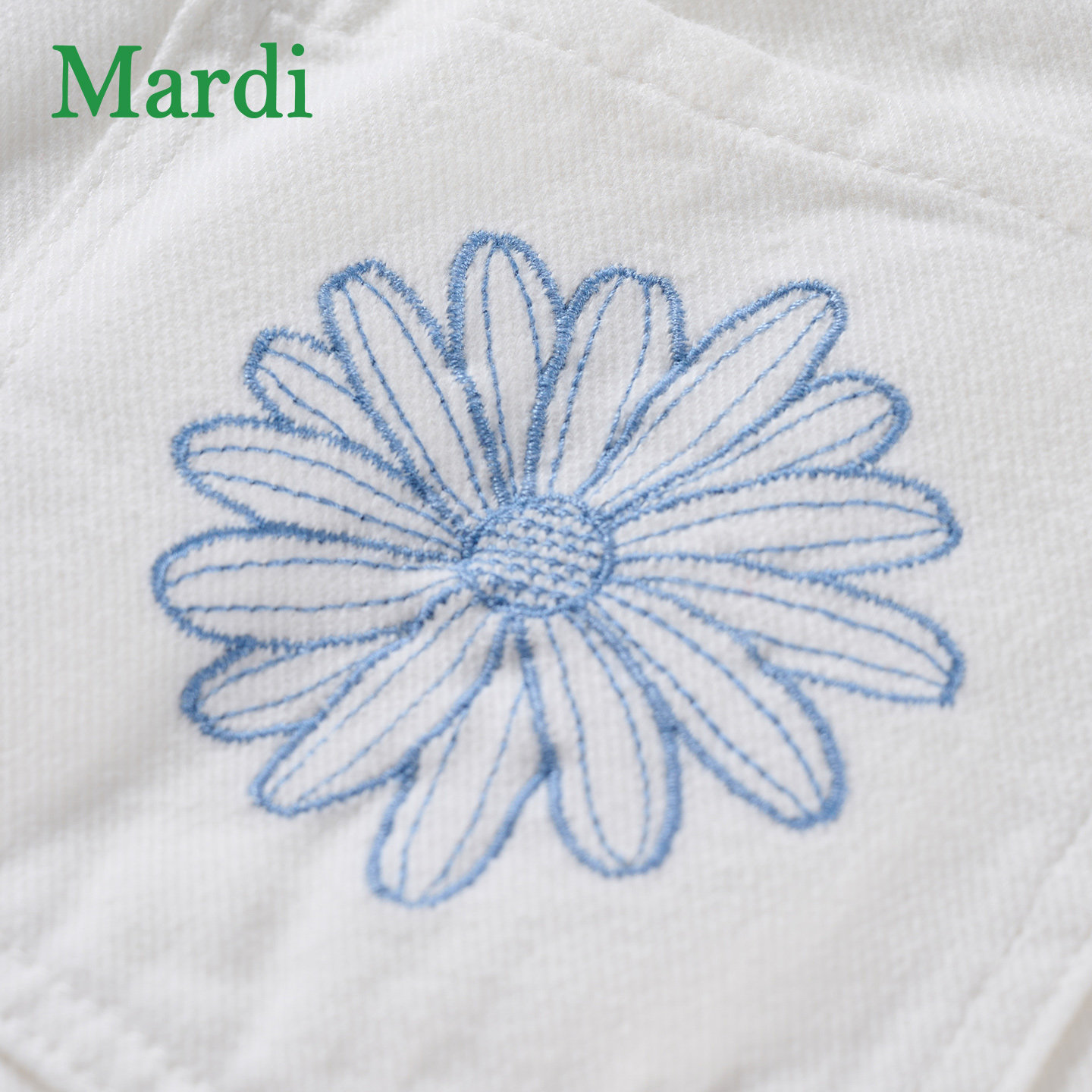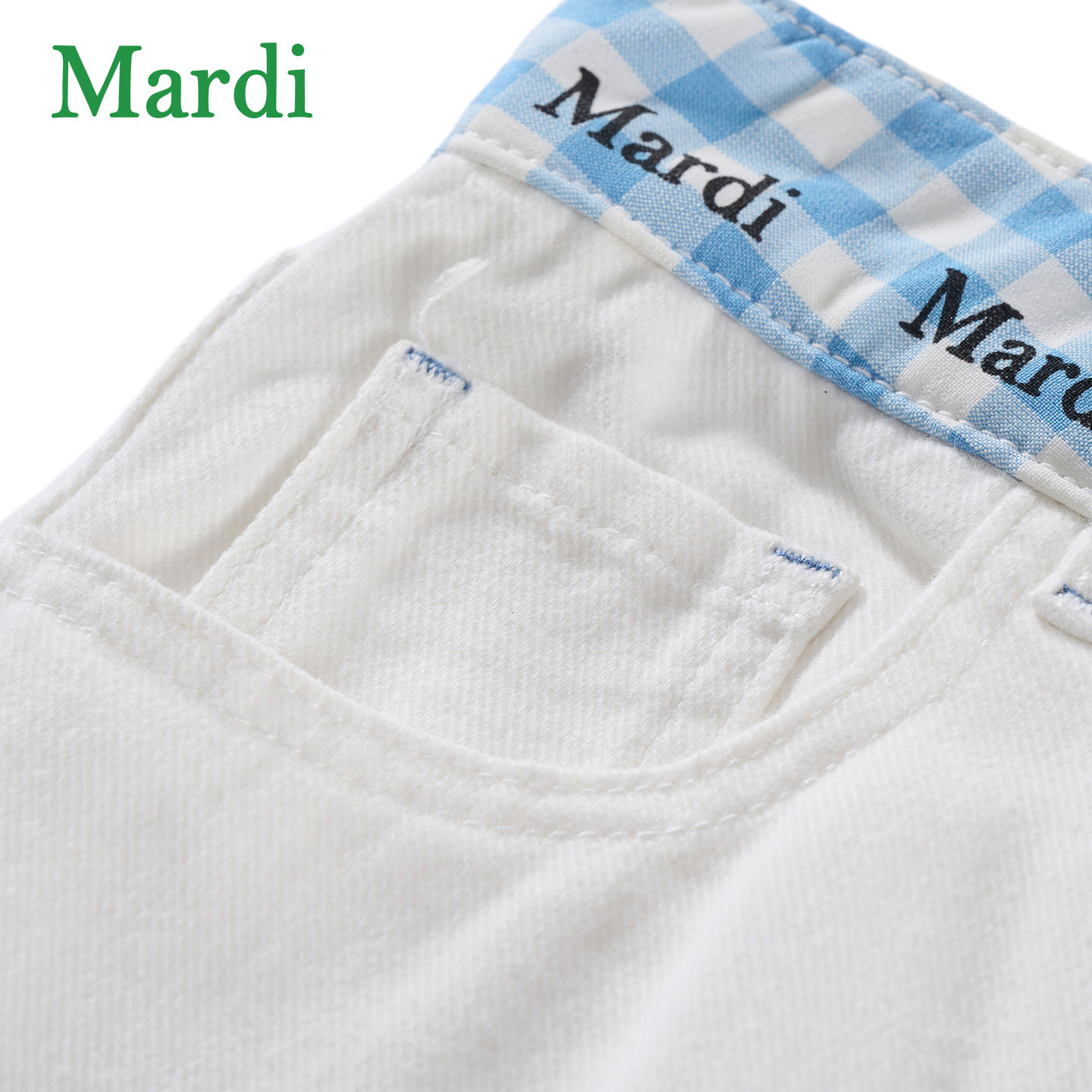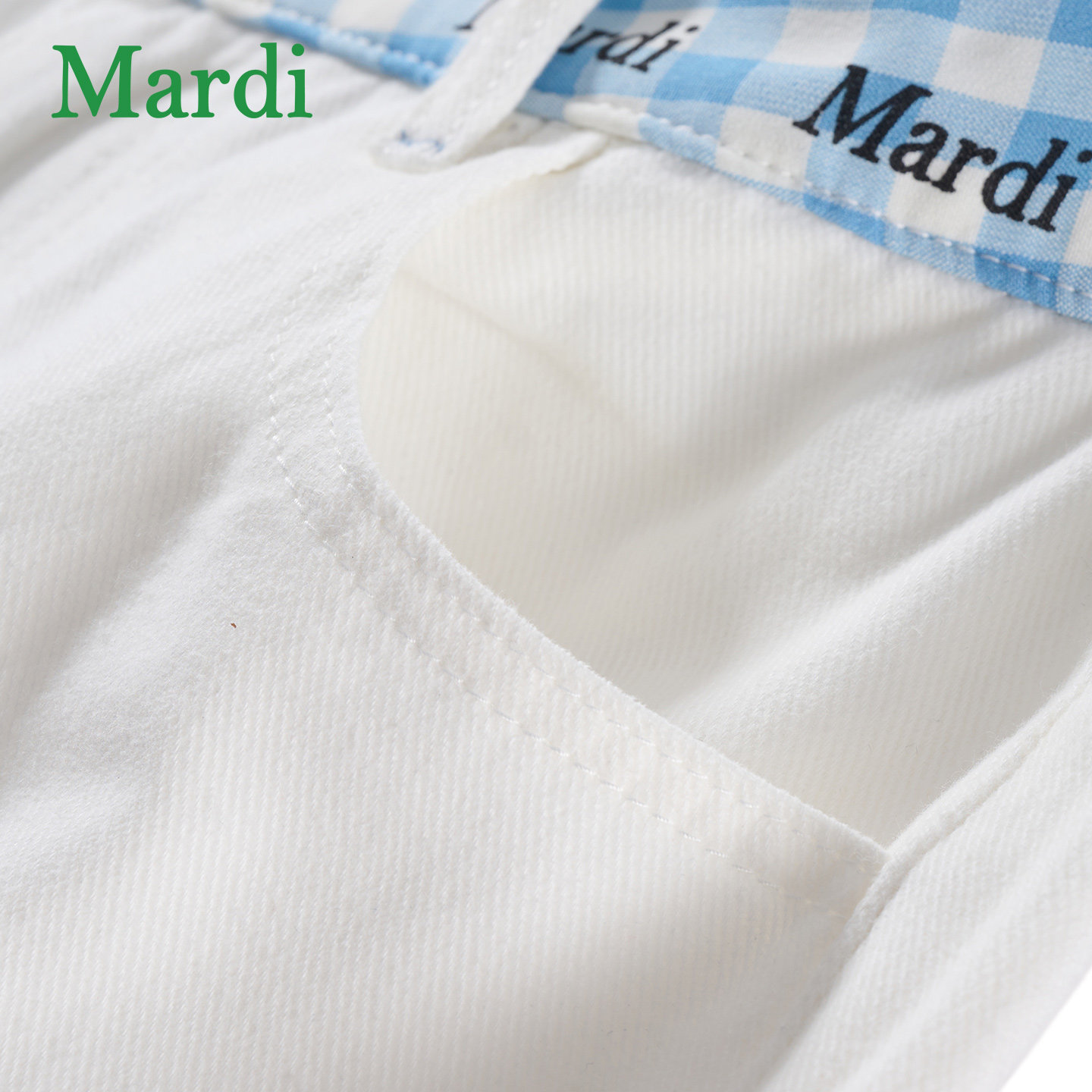 MARDI牛仔裤高腰阔腿休闲裤女白色宽松直筒裤格纹腰带长裤女士