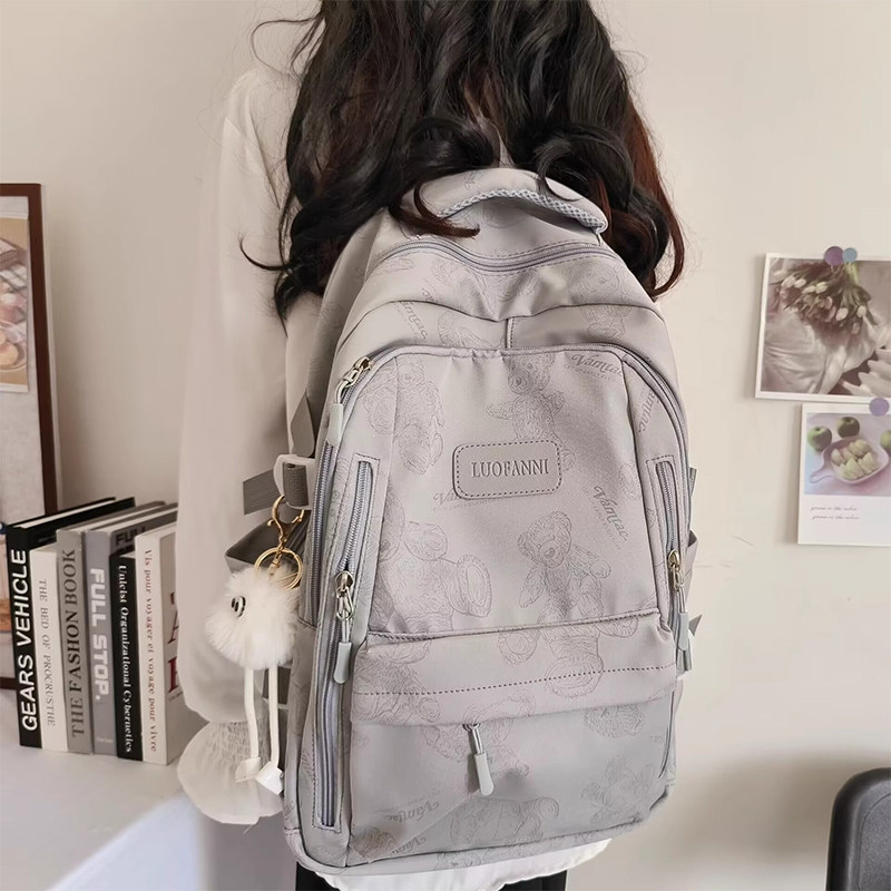 书包女初中生简约百搭印花小熊小众设计2024新款大学生电脑背包潮