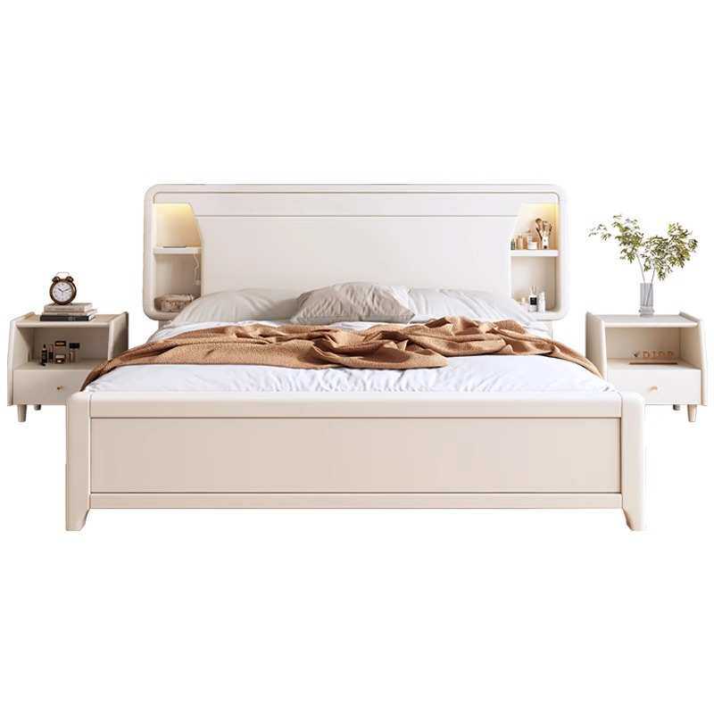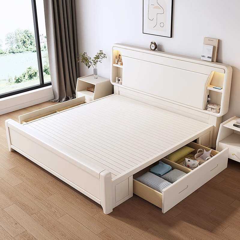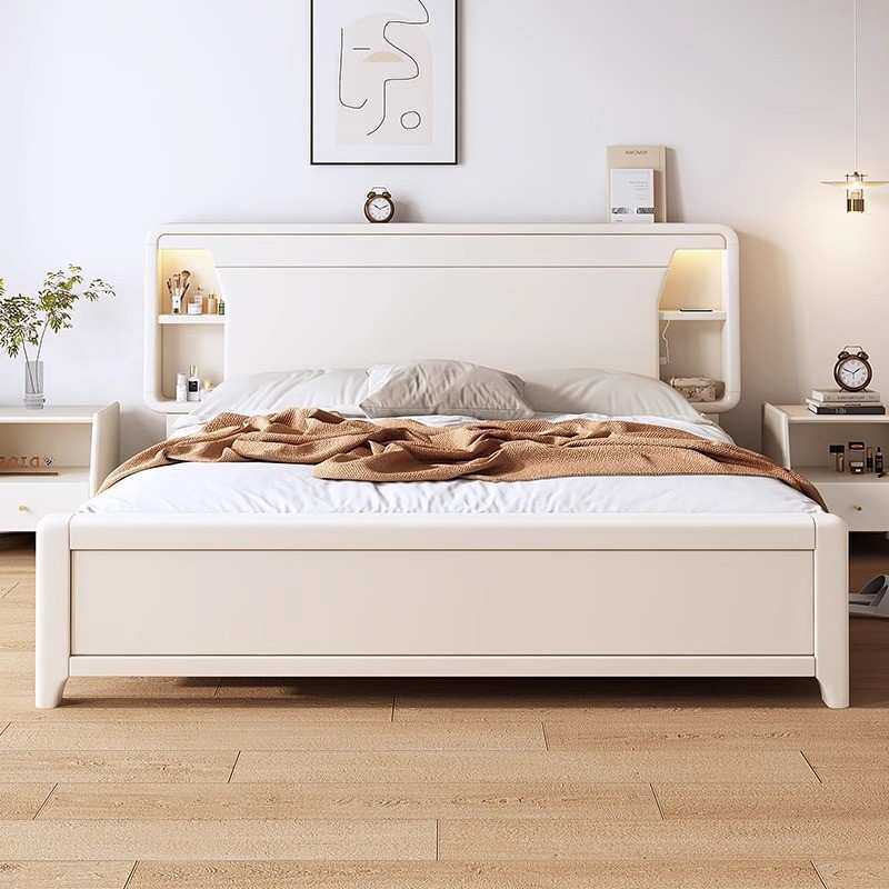奶油风白色实木床家用1.8m小户型主卧1.5m现代简约单双人储物婚床