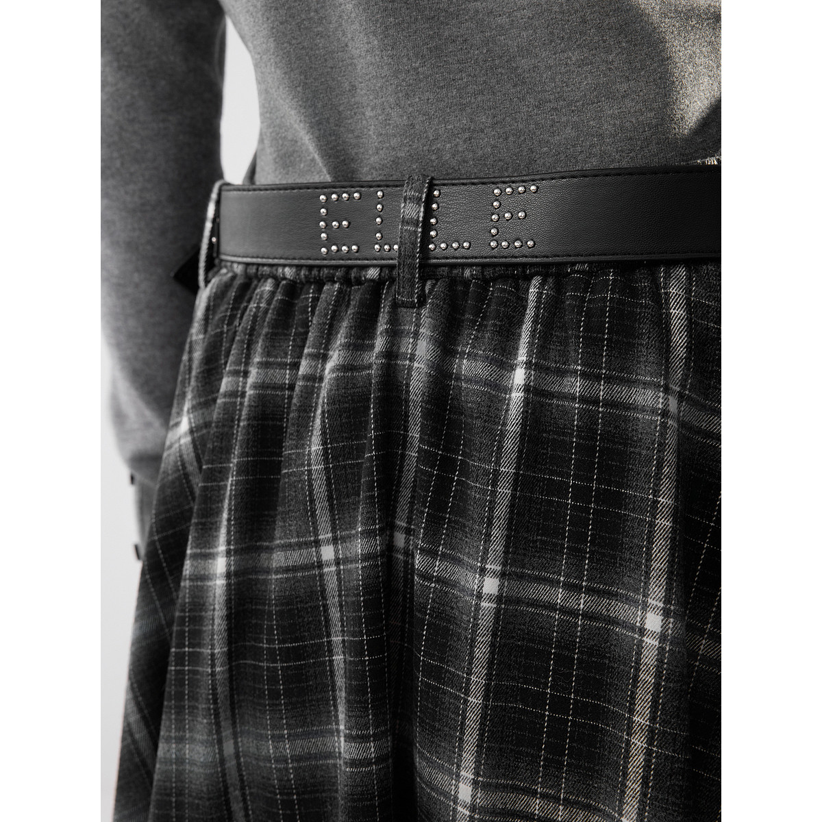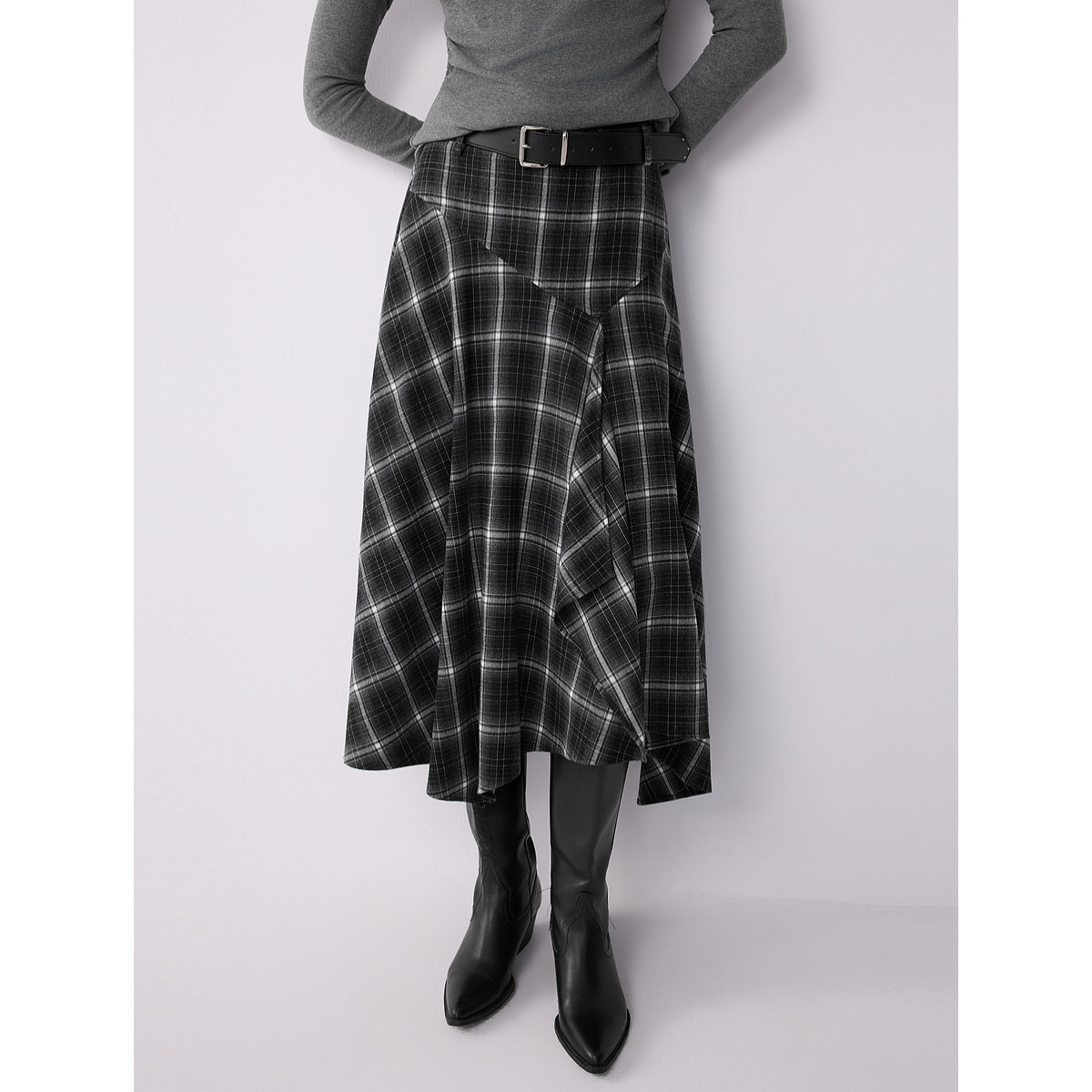 【祝绪丹同款】ELLE不规则格纹半身裙女2025冬新款设计感a字长裙