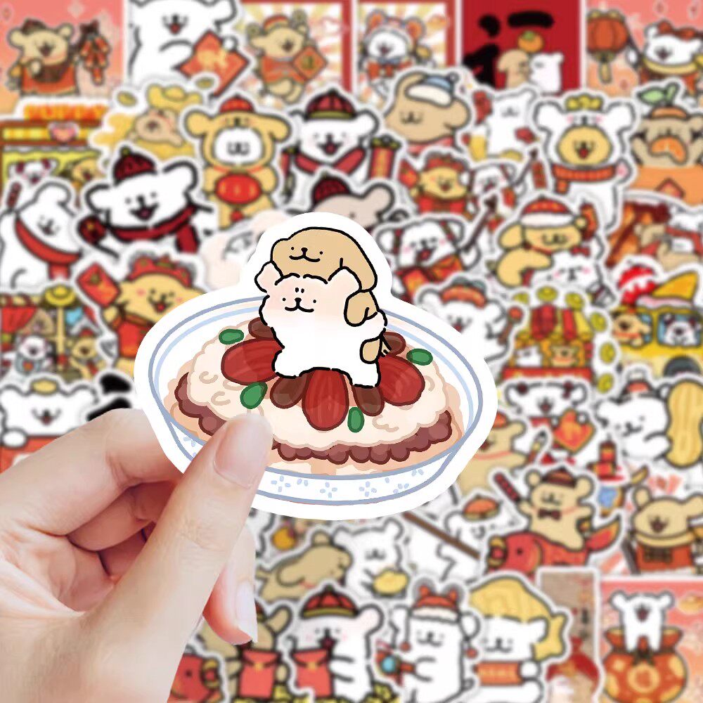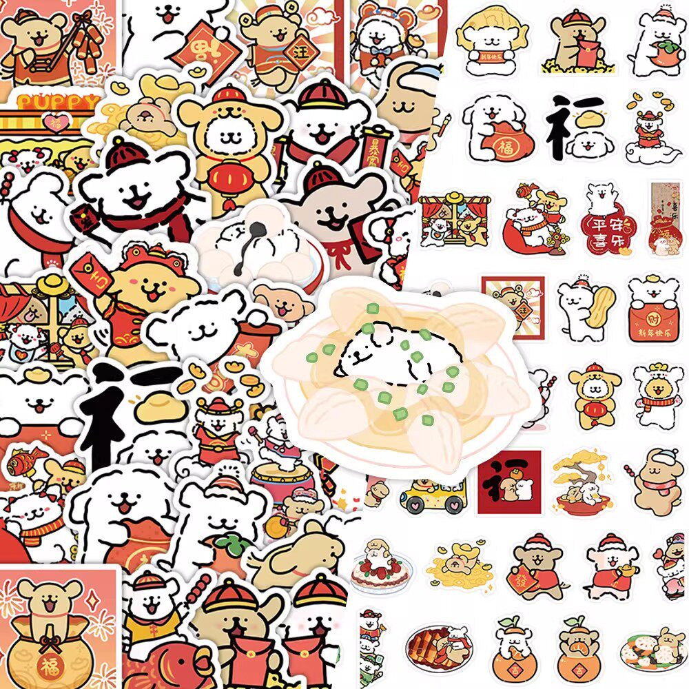 2026年新年线条小狗贴纸卡通可爱吉伊卡哇儿童diy装饰手账标签贴