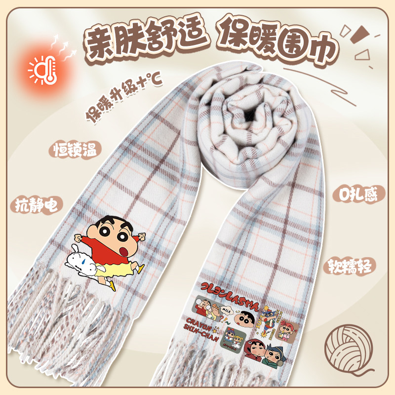 蜡笔小新围巾秋冬季女生学生卡通百搭加厚保暖格子披肩围脖送礼物