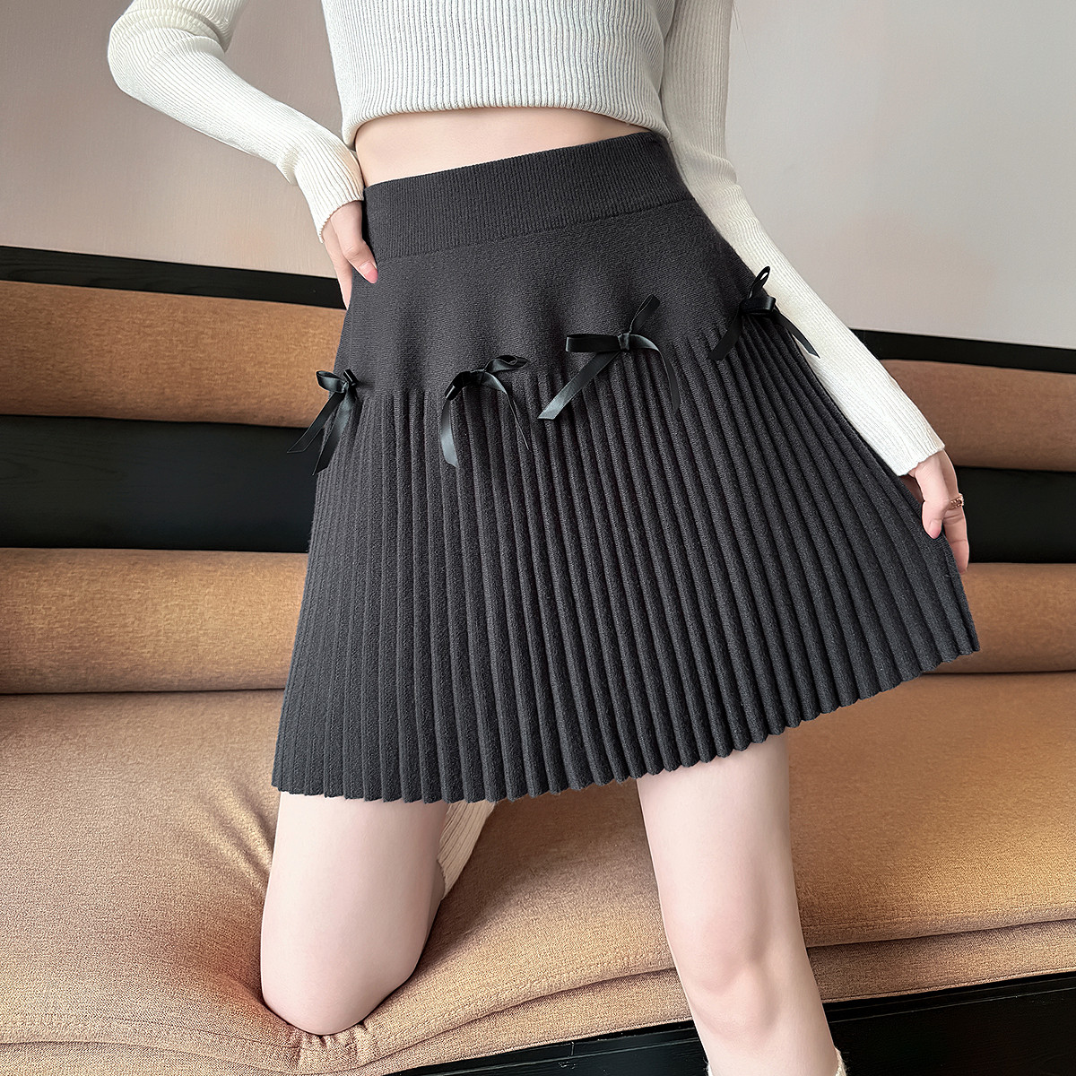 【关晓彤同款】唐狮秋冬季半身短裙女甜美蝴蝶结甜美穿搭黑色tuTA