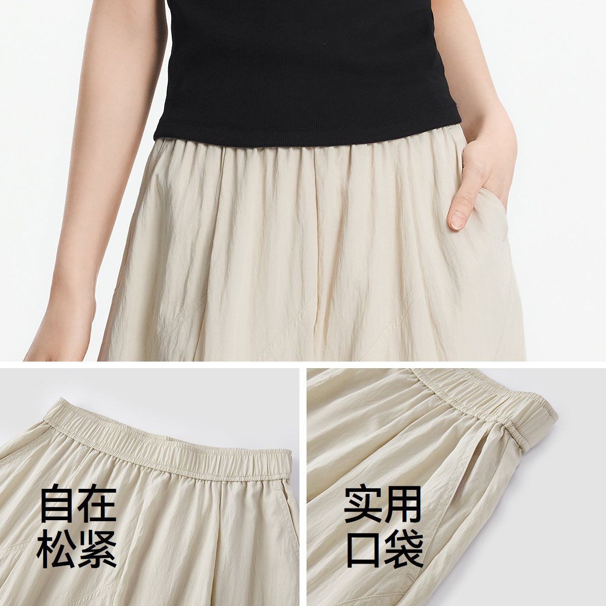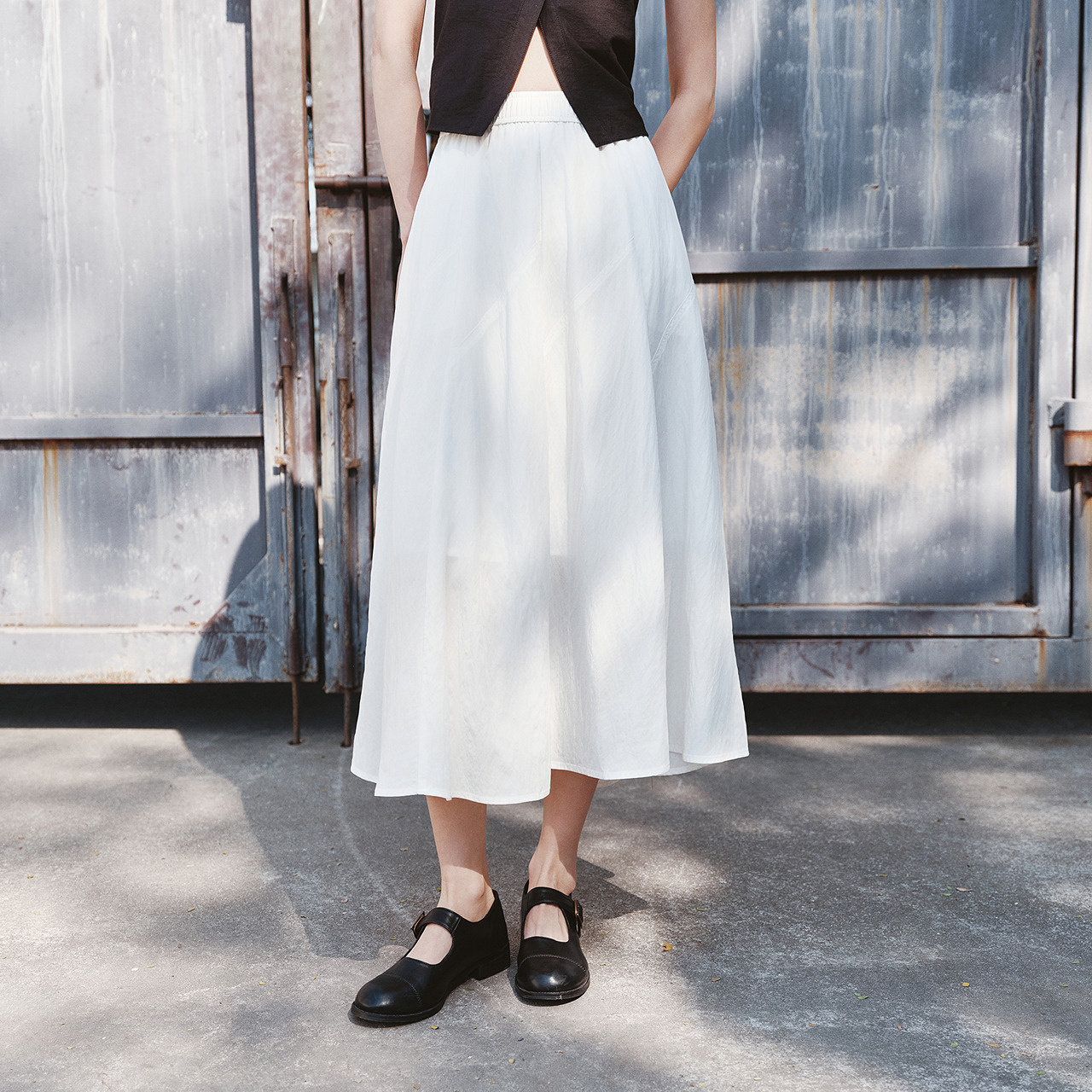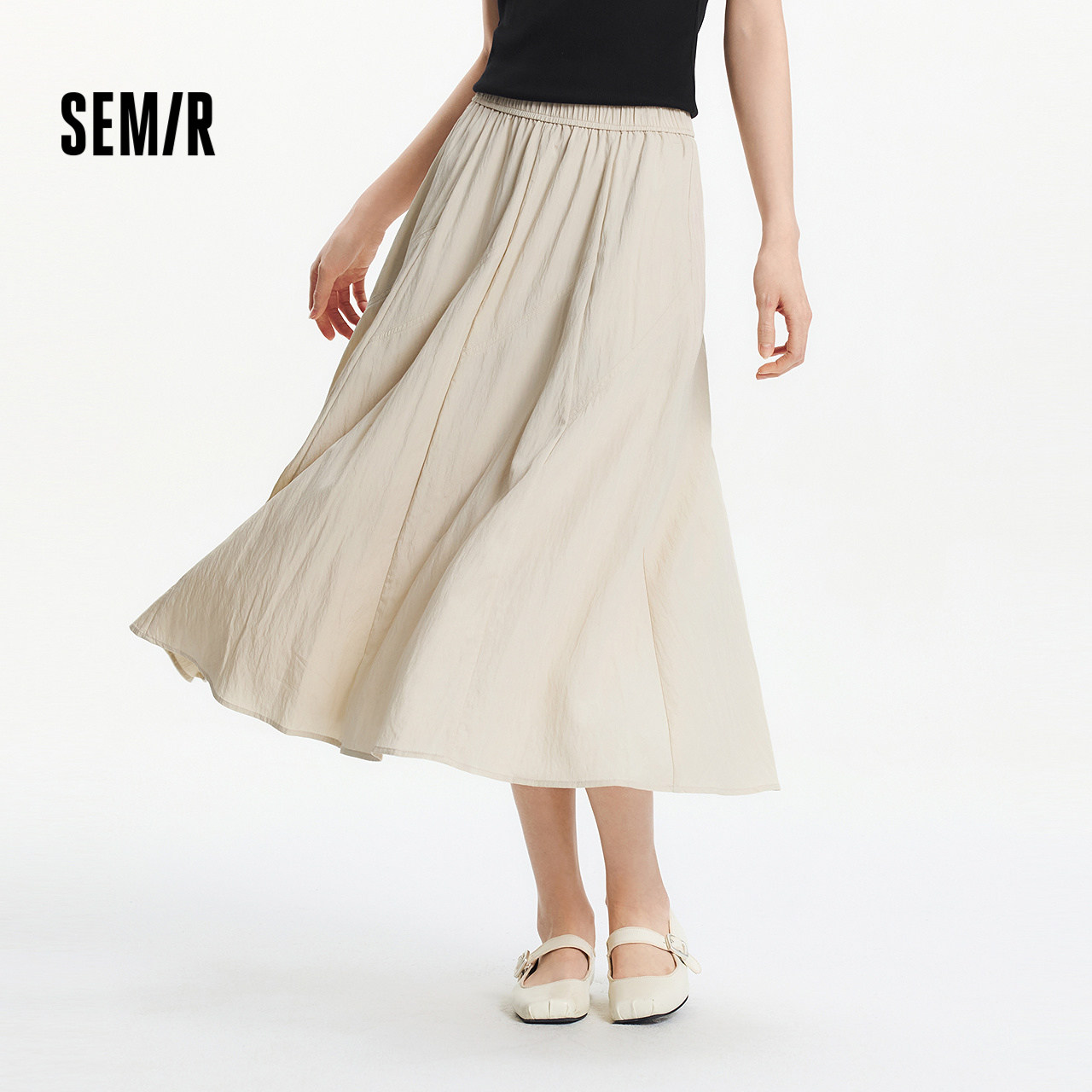 森马半身裙女夏季松紧腰肌理垂感分割A字裙宽松松弛感山本风长裙