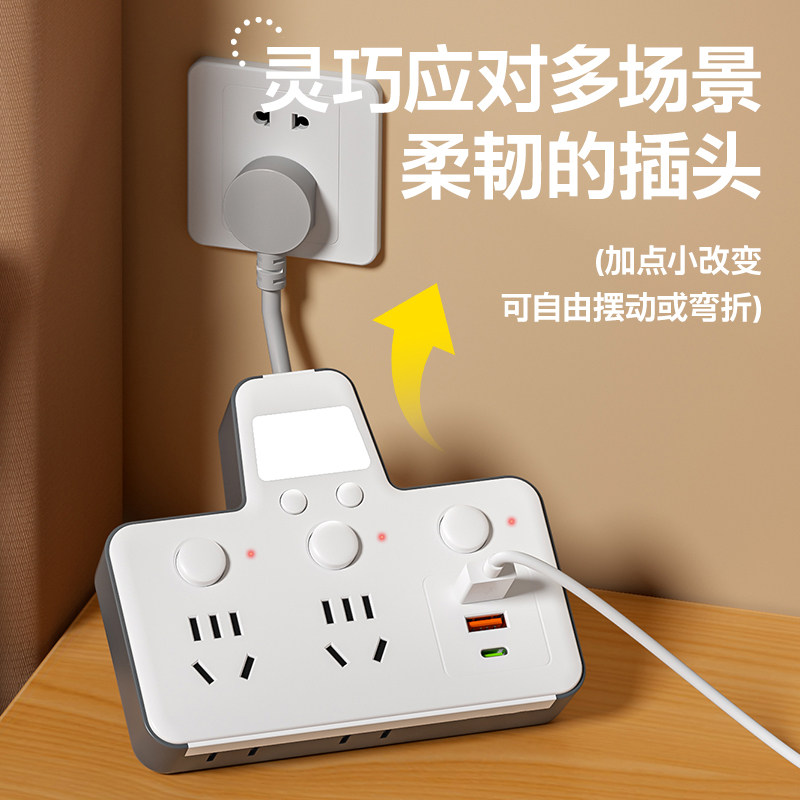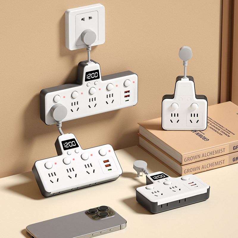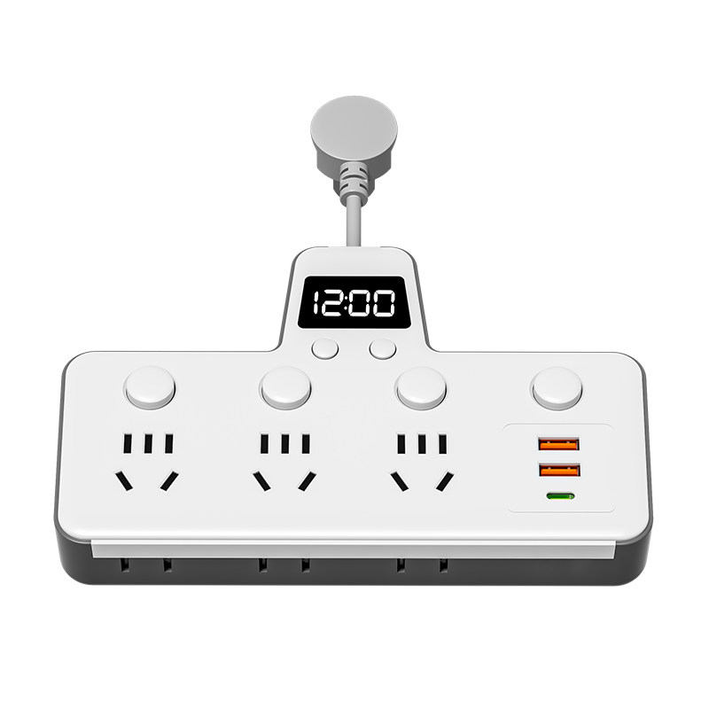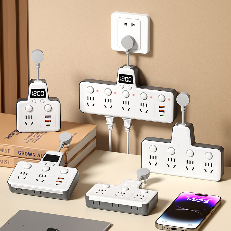 家用插座带USB时钟排插多功能家用办公多孔插线板带夜灯宿舍插头
