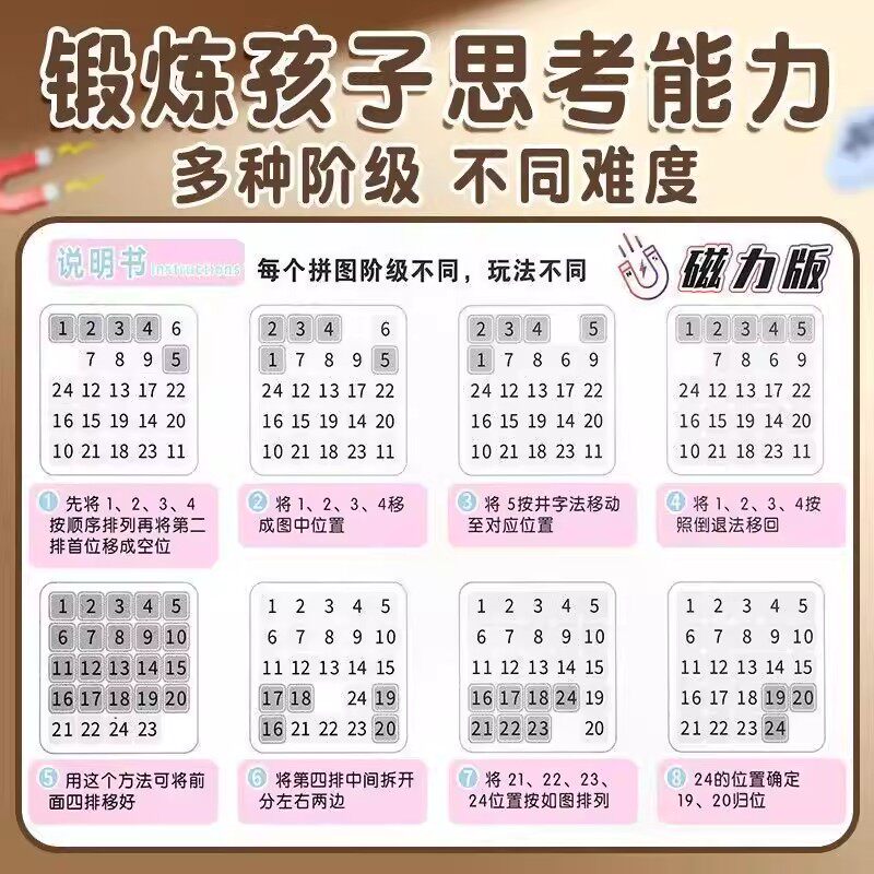 数字华容道小学生磁性比赛专用拼图九宫格儿童数独益智拼装玩具