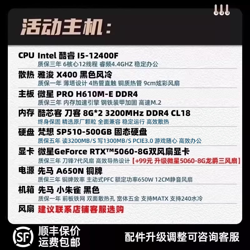 装机猿玩家店 特价微星GeForceRTX5060-8G双风扇/12400F/5600主机