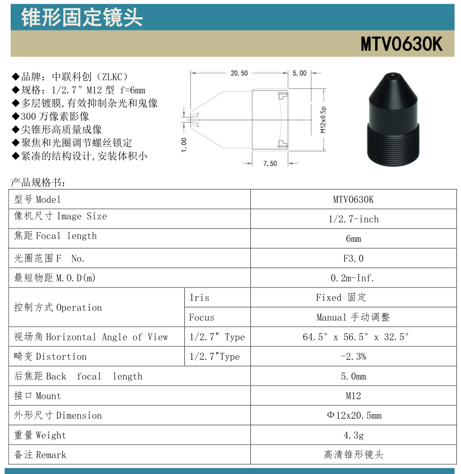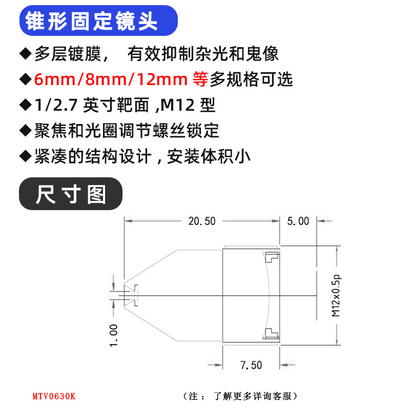 锥形镜头6mm8mm10mm-70mm焦距可选 高分辨率M12口摄像机监控镜头