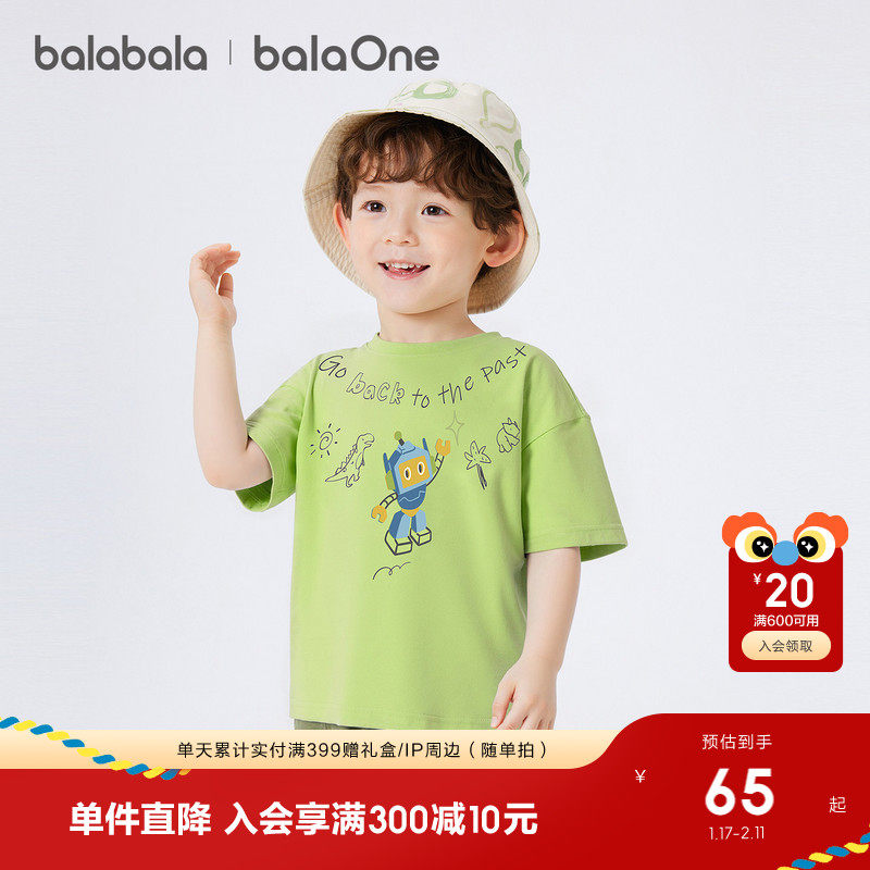 【balaOne】巴拉巴拉宝宝短袖t恤女童夏装2025新款甜美上衣小飞袖