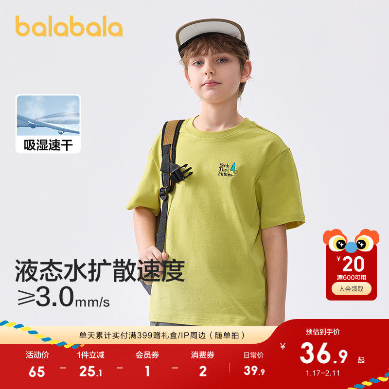 巴拉巴拉童装儿童短袖T恤男童女童上衣大童2025新款夏装速干时尚