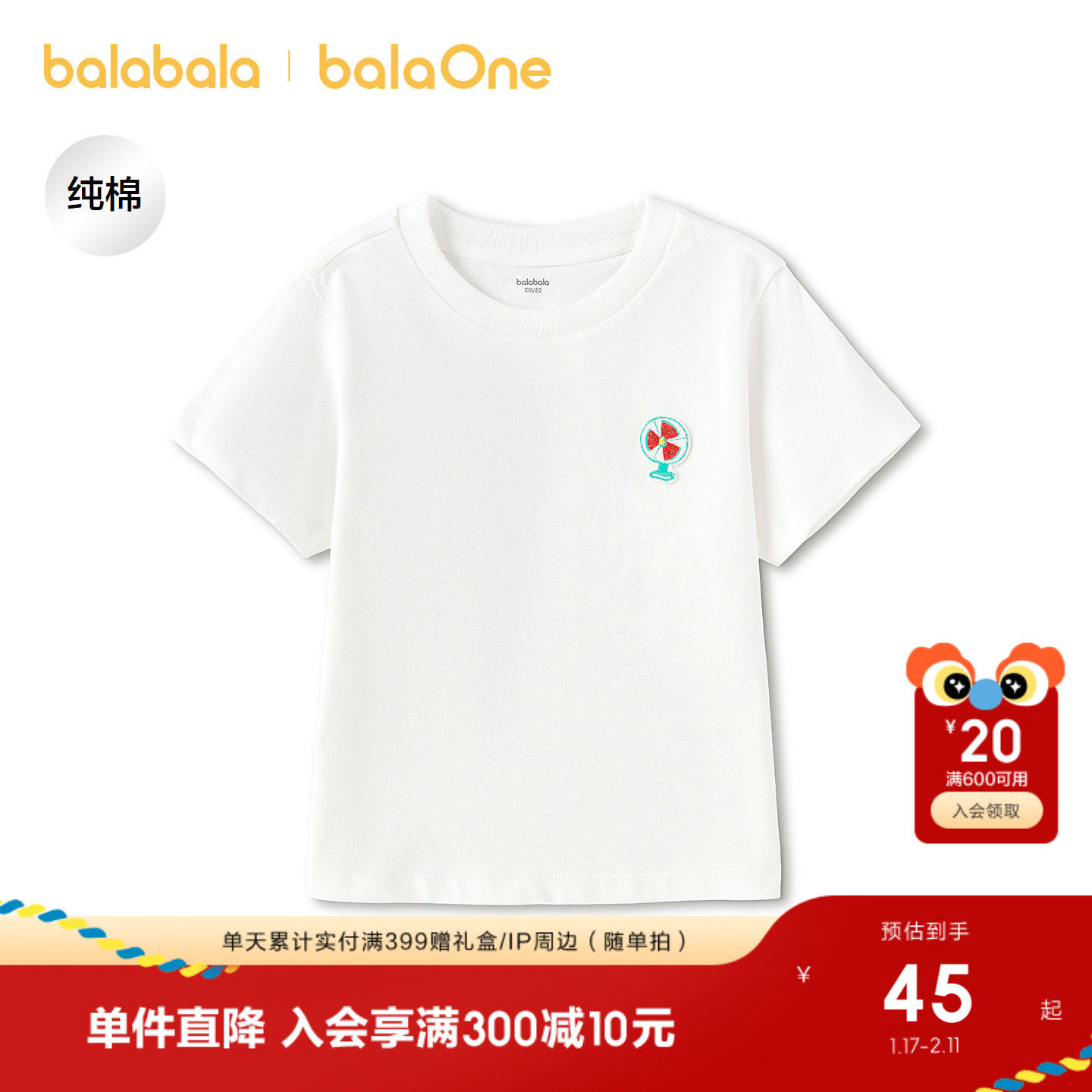 纯棉短袖T恤,卡通刺绣章标