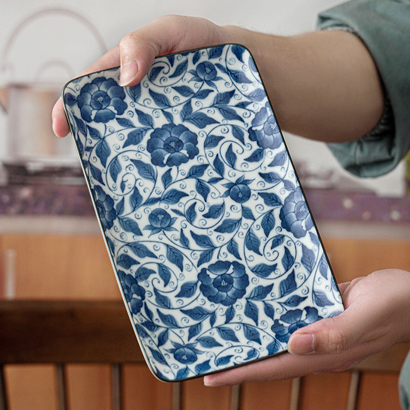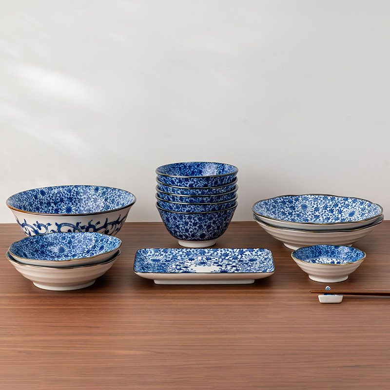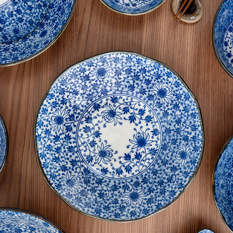 美浓烧进口碗盘碟12件套进口釉下彩汤碗大盘日式古染家用餐具套装