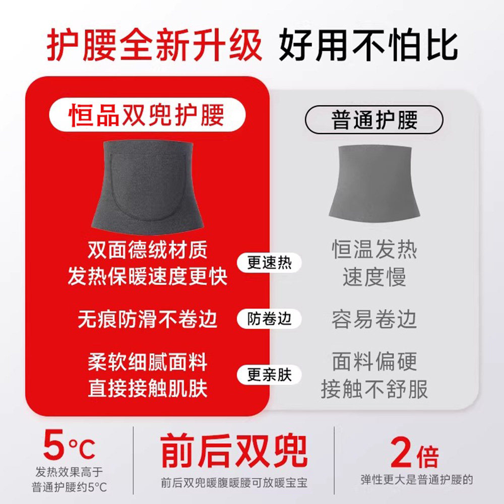 德绒护腰带发热护肚围保暖防着凉寒暖胃秋冬加热腹部热敷护腰双兜