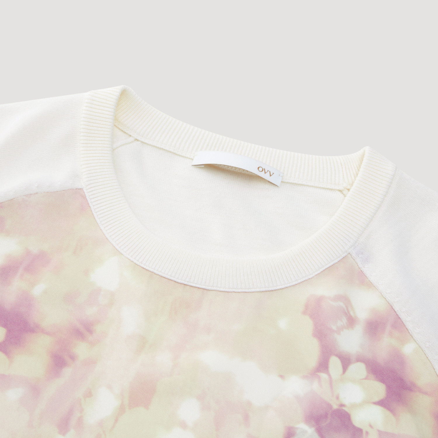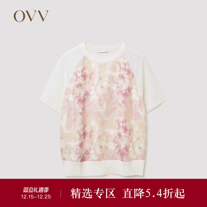【黄金羊毛】OVVOutlet秋冬热卖女装时尚印花圆领短袖针织衫