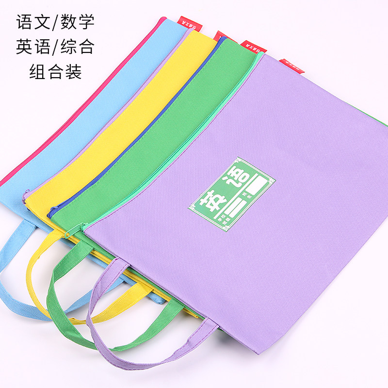 科目分类文件袋透明拉链式a4收纳拎书课外班作业男女孩书包小学初中生l型考试试卷学科补习网纱手提袋大容量