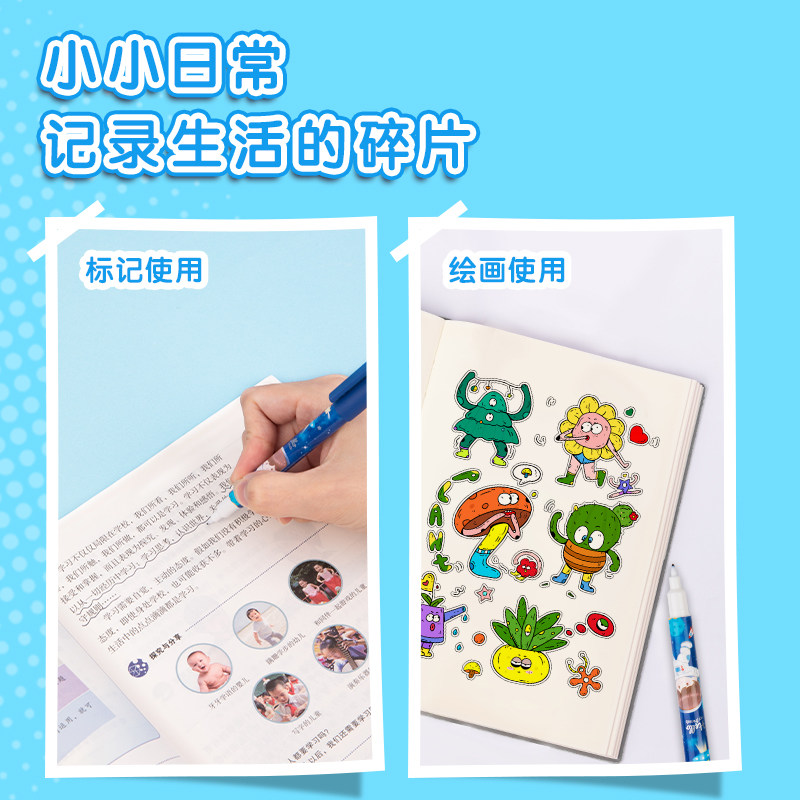 美术勾线笔不晕染描线笔幼儿园儿童绘画笔小学生专用一年级黑色立体勾边笔油画水性记号笔可水洗粗细两头描边