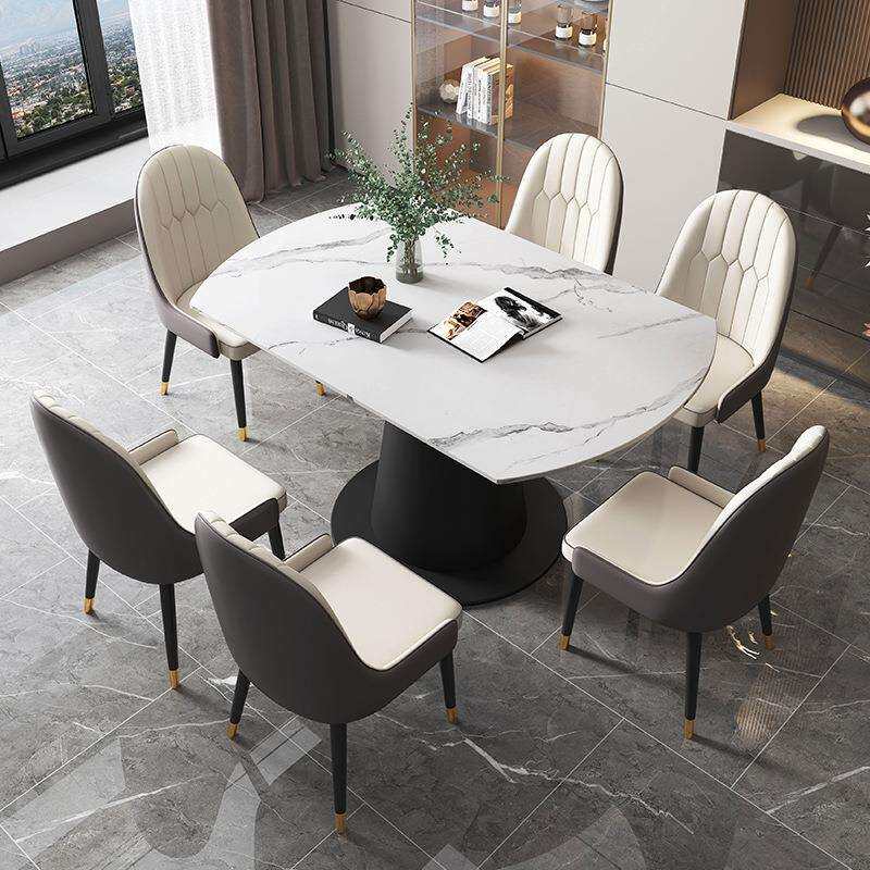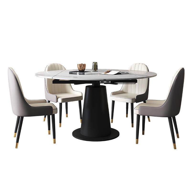 方圆两用岩板餐桌椅组合旋转折叠多功能伸缩现代简约家用亮光饭桌