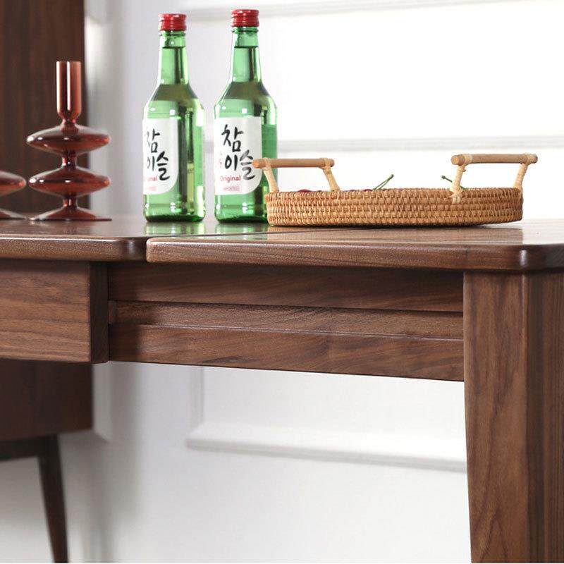 北欧日式黑胡桃木设计可伸缩餐桌现代简约实木原木小户型简易饭桌