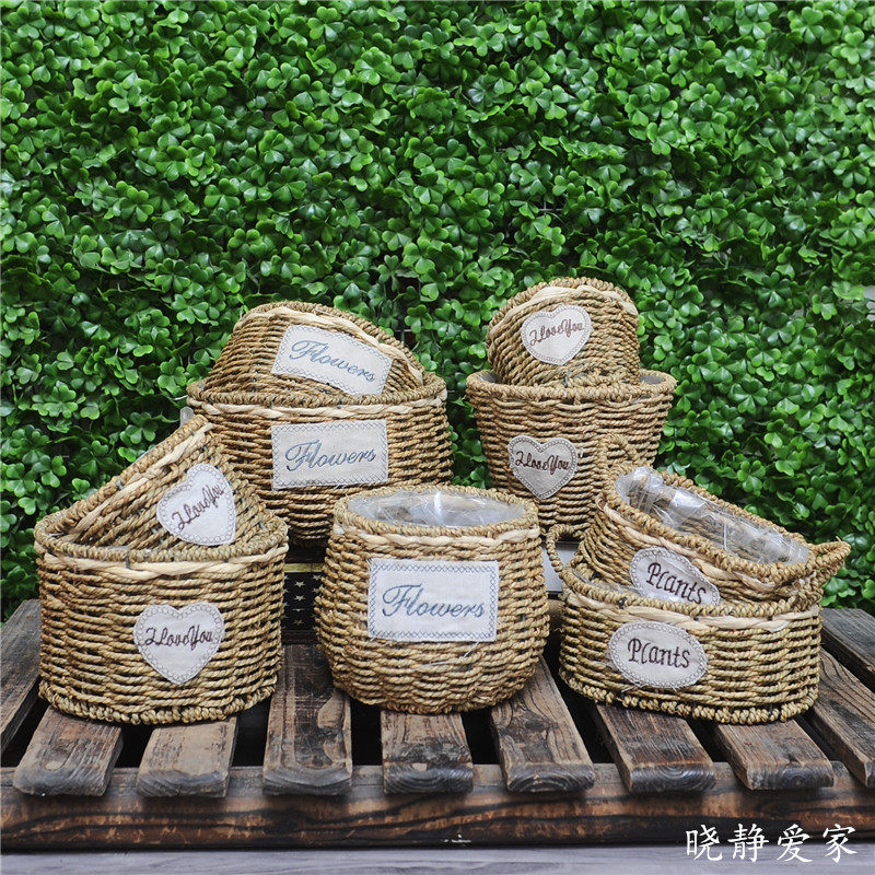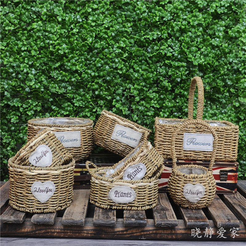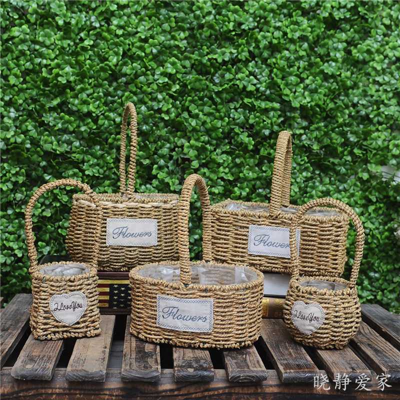草编花盆藤编花篮手工编织绿萝插花多肉创意壁挂手提摆件鲜花室内