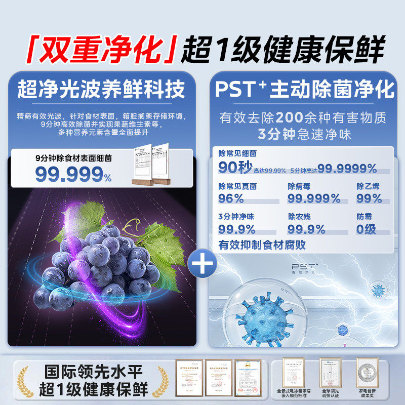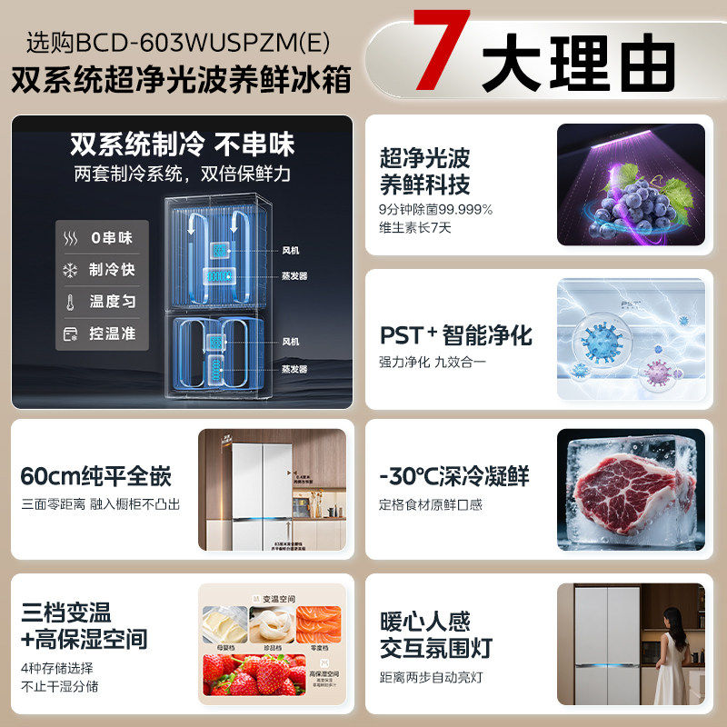 美的熊墩墩PRO超净603双系统超薄零嵌十字四门双开家用大容量冰箱