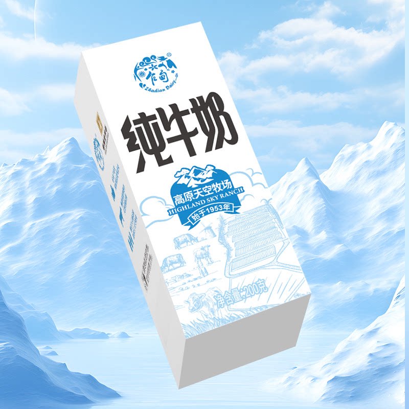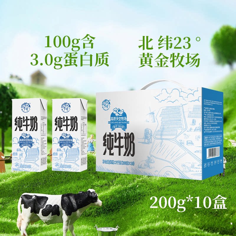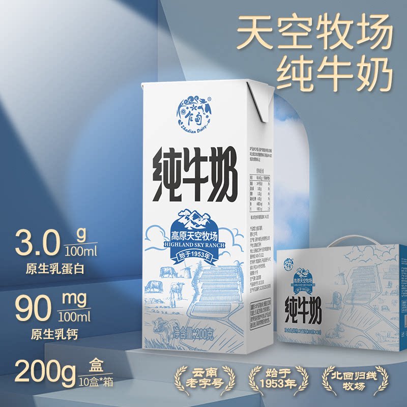 乍甸云南高原天空牧场纯牛奶常温200g*10盒/箱学生儿童营养早餐奶