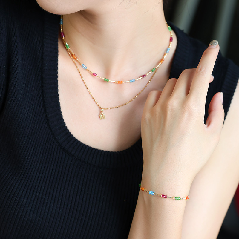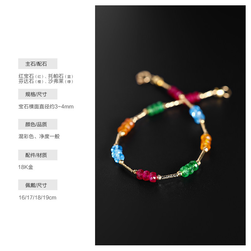 若华珠宝彩芸 满天星红宝石石榴石托帕石多宝18K金手链彩宝礼物