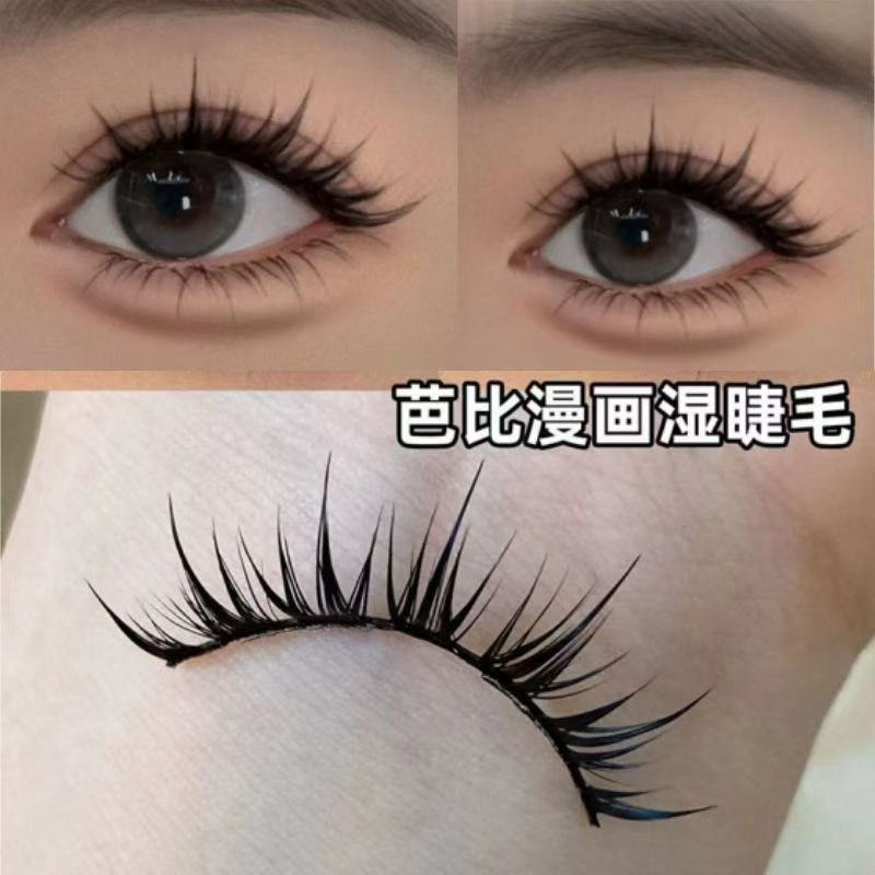 漫画湿眼睫毛硬梗一片式假睫毛同款浓密假睫毛自然卷翘双眼皮嫁接