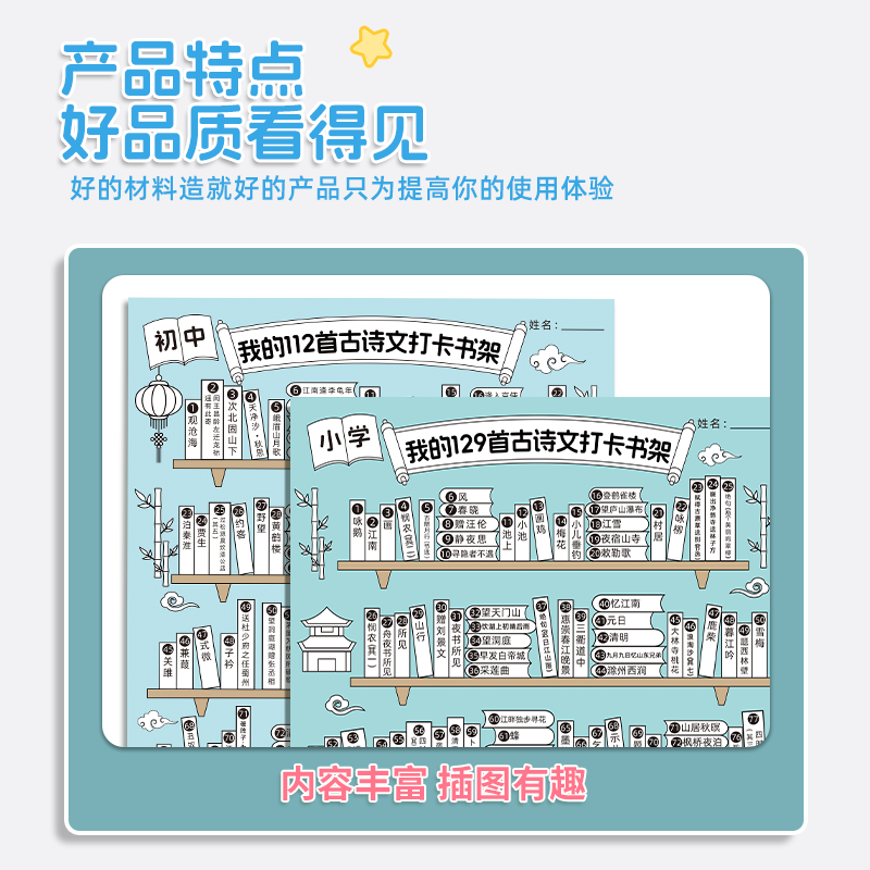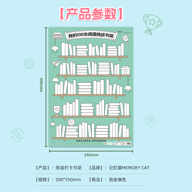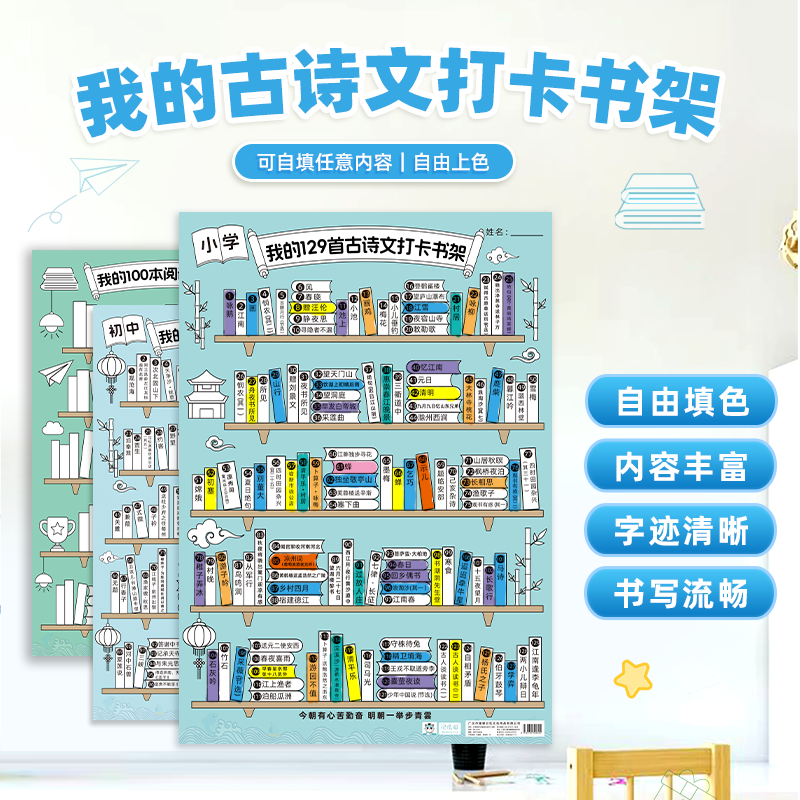 记忆猫古诗打卡挂图记录表小书架海报我的阅读打卡涂色大号墙贴小学生必背古诗词文背诗打卡表儿童自律读书