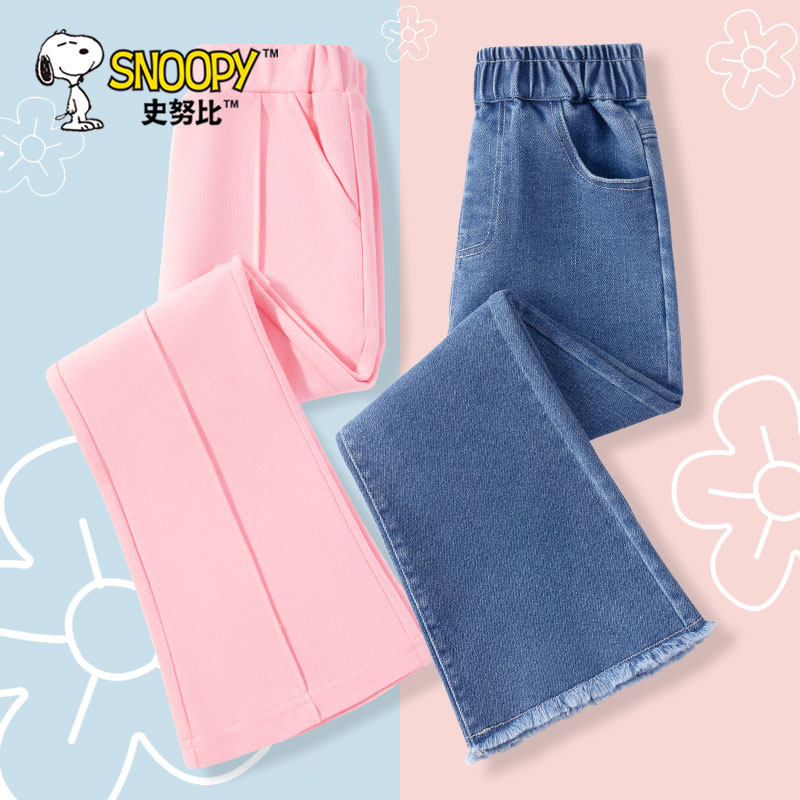 史努比女童喇叭裤春秋2025新款女孩阔腿裤洋气休闲裤子儿童牛仔裤