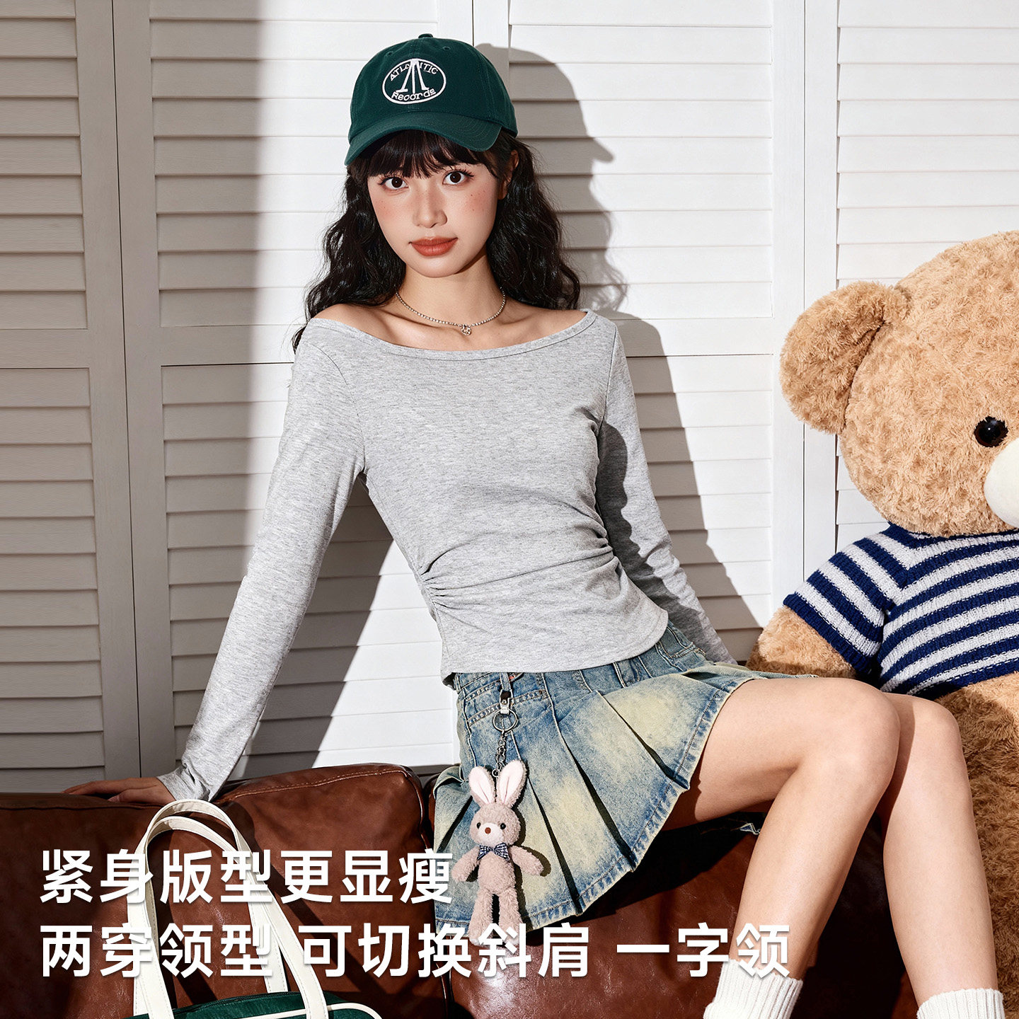 唐狮官方一字肩长袖t恤女2026新款春夏款女款露肩修身内搭上衣VB