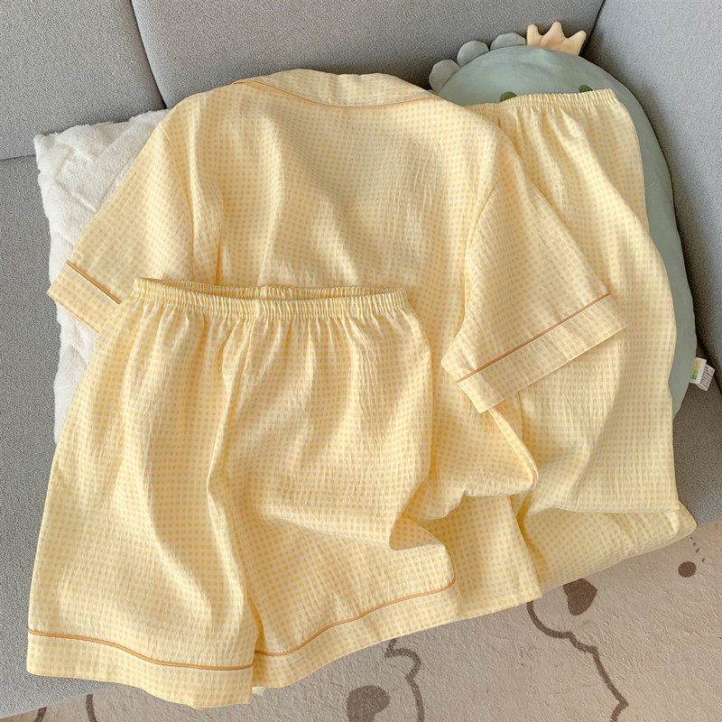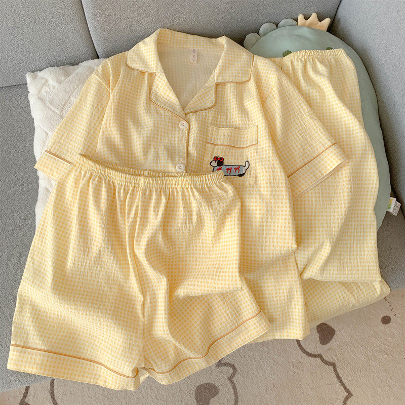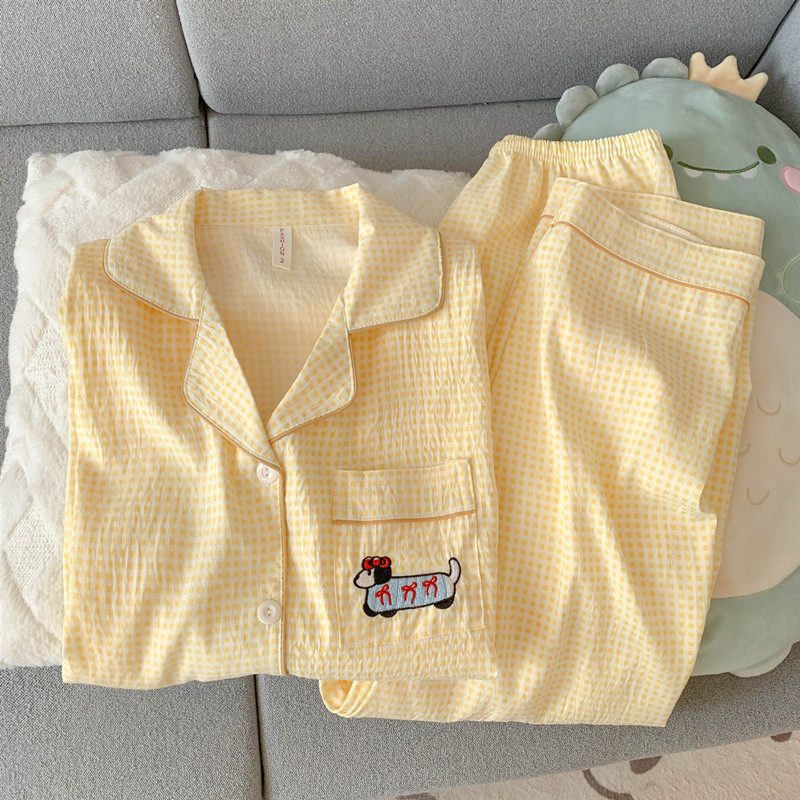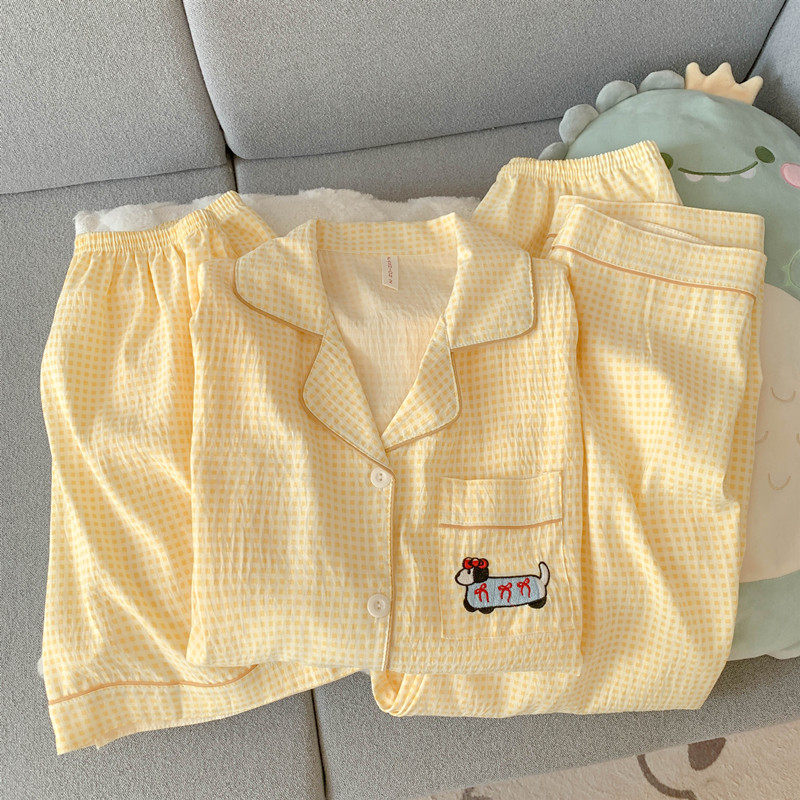 红豆腊肠狗睡衣女款2026新款夏季纯棉纱布短袖三件套装开衫棉绸家