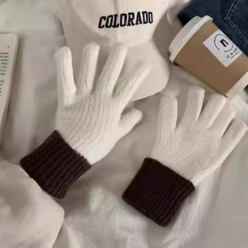 长款可爱彩虹条纹分指手套少女冬季防冻露指可触屏保暖针织手套女