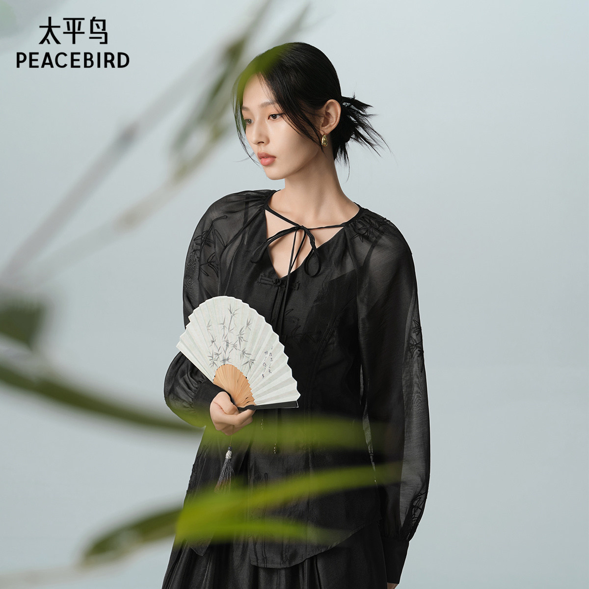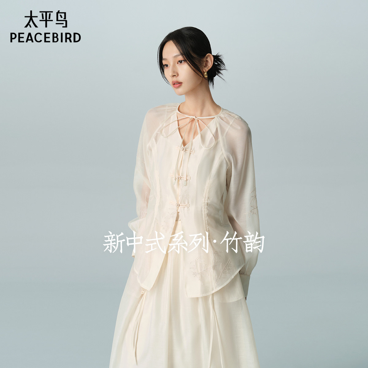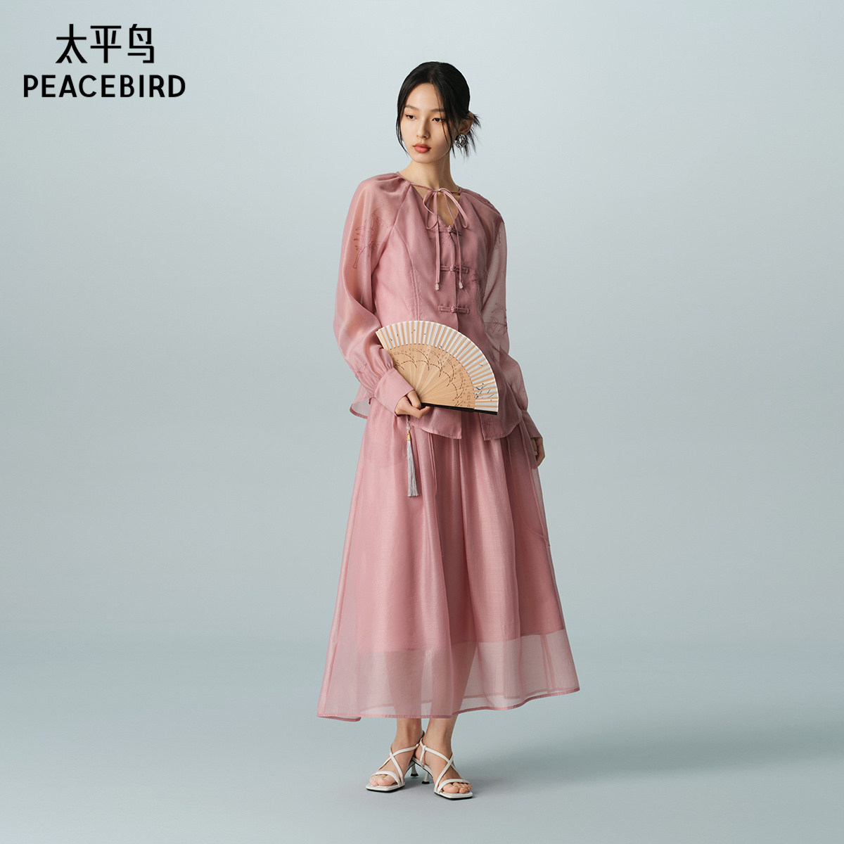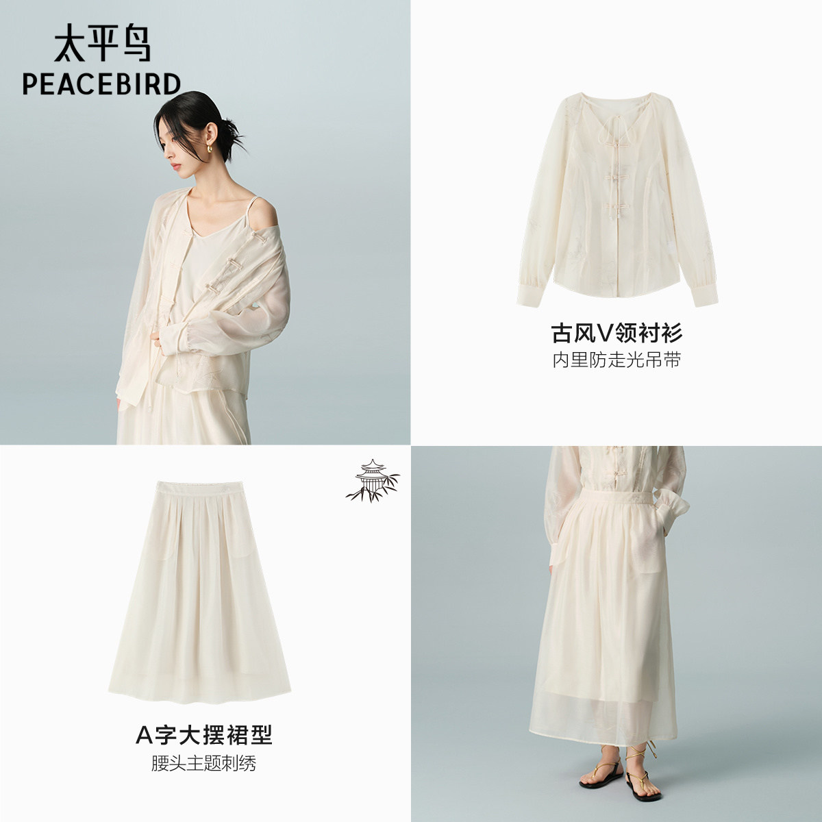 太平鸟女装新中式刺绣套装2025夏新款洋气别致V领连衣裙时尚裙子