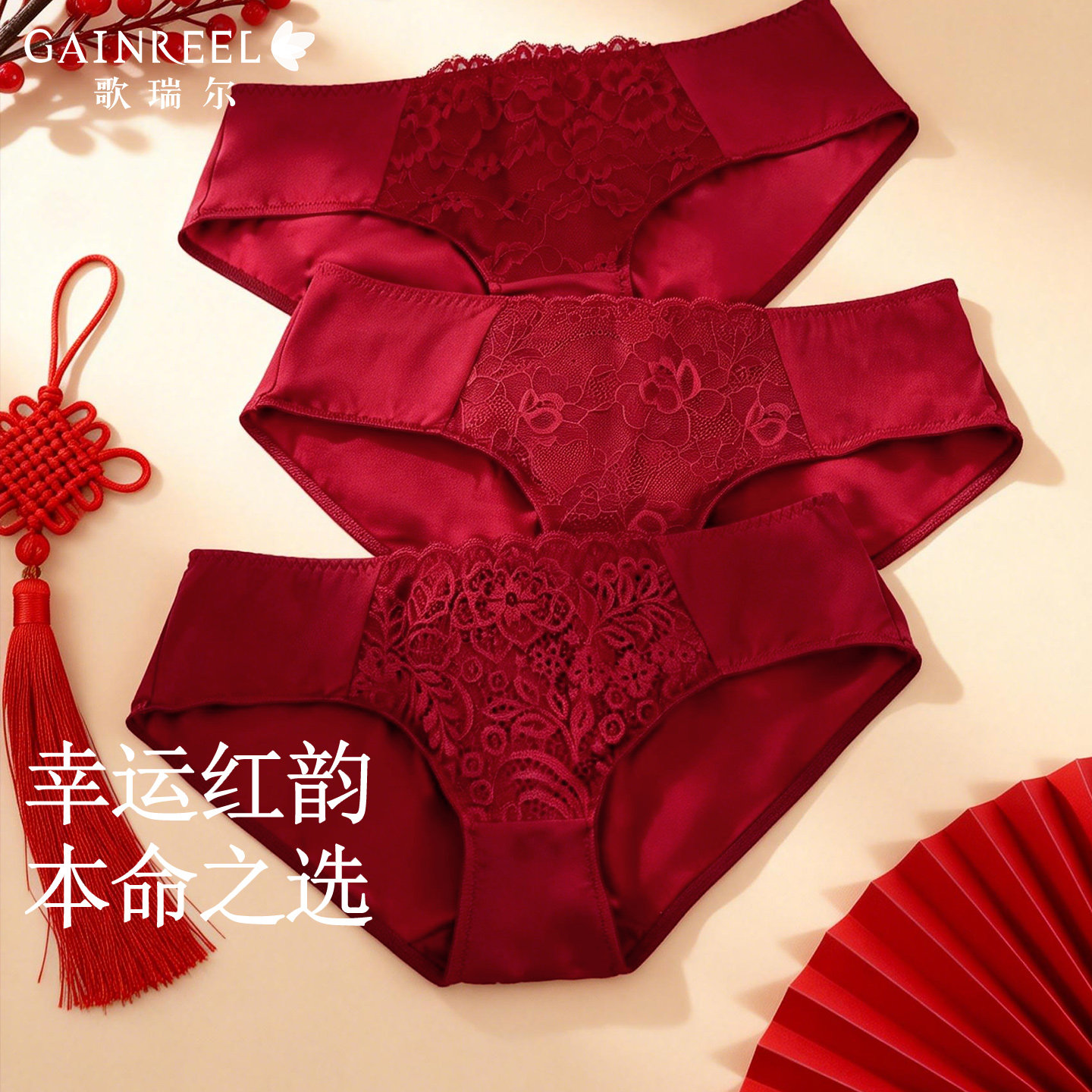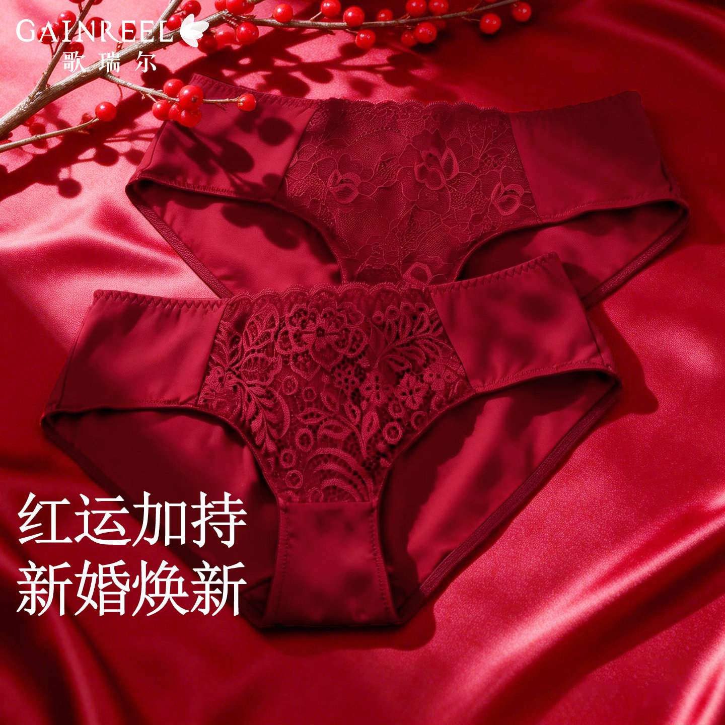歌瑞尔纯欲蕾丝本命年红色内裤女结婚新婚中低腰性感亲肤平角底裤
