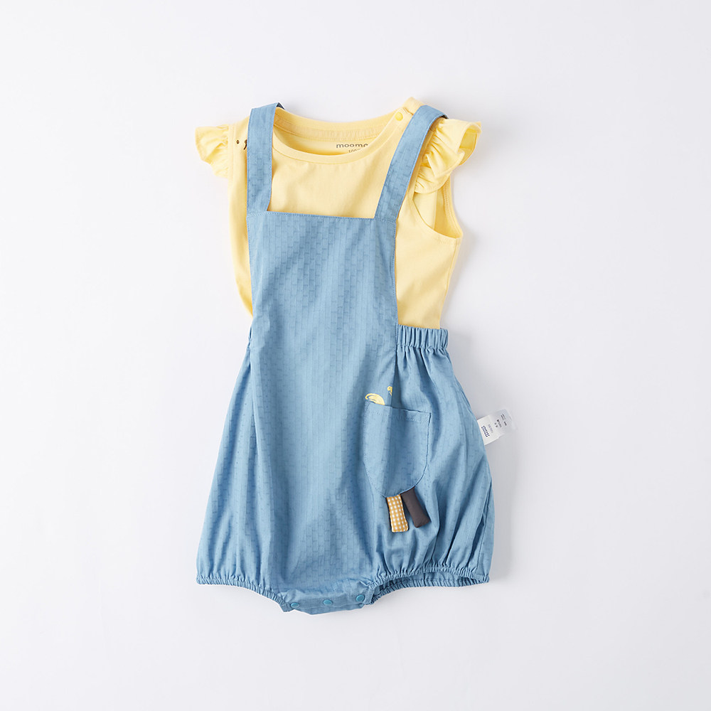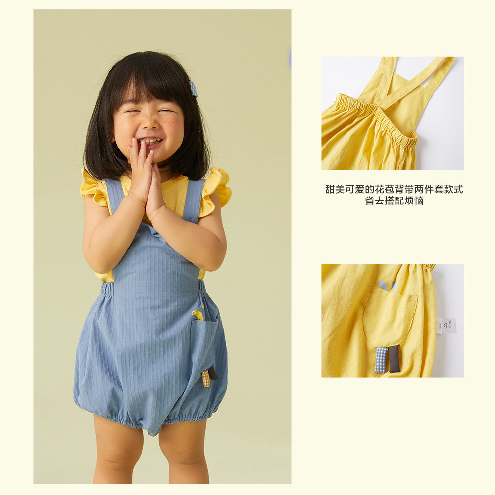 美特斯邦威moomoo童装背带裤无袖T恤组合女婴童纯棉春夏套装