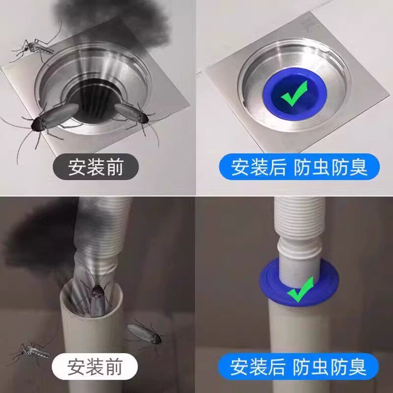 地漏防臭器下水道器卫生间反味防返臭神器硅胶垫防虫内芯下水管