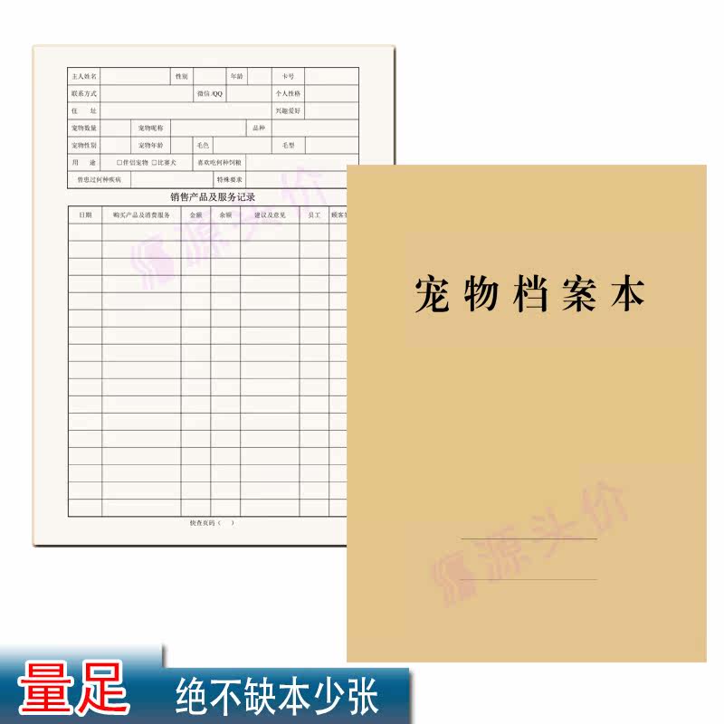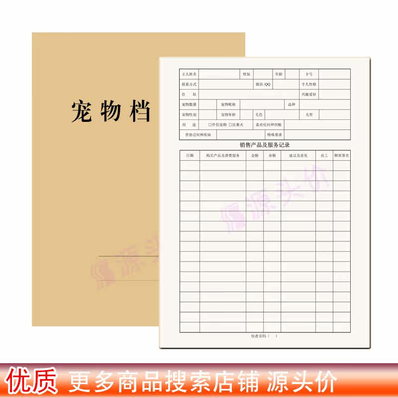 宠物档案本动物品种外貌信息备注产品销售购买服务情况记录本定制