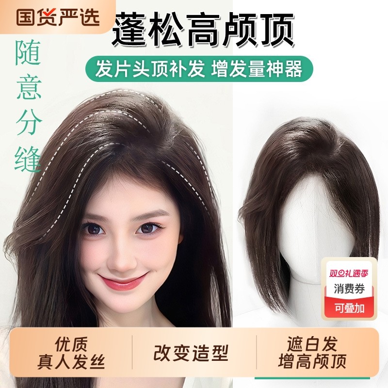高颅顶假发女片头顶增发量蓬松神器真发全真人八字刘海补发片前额