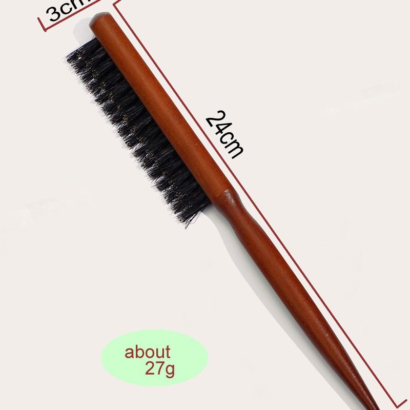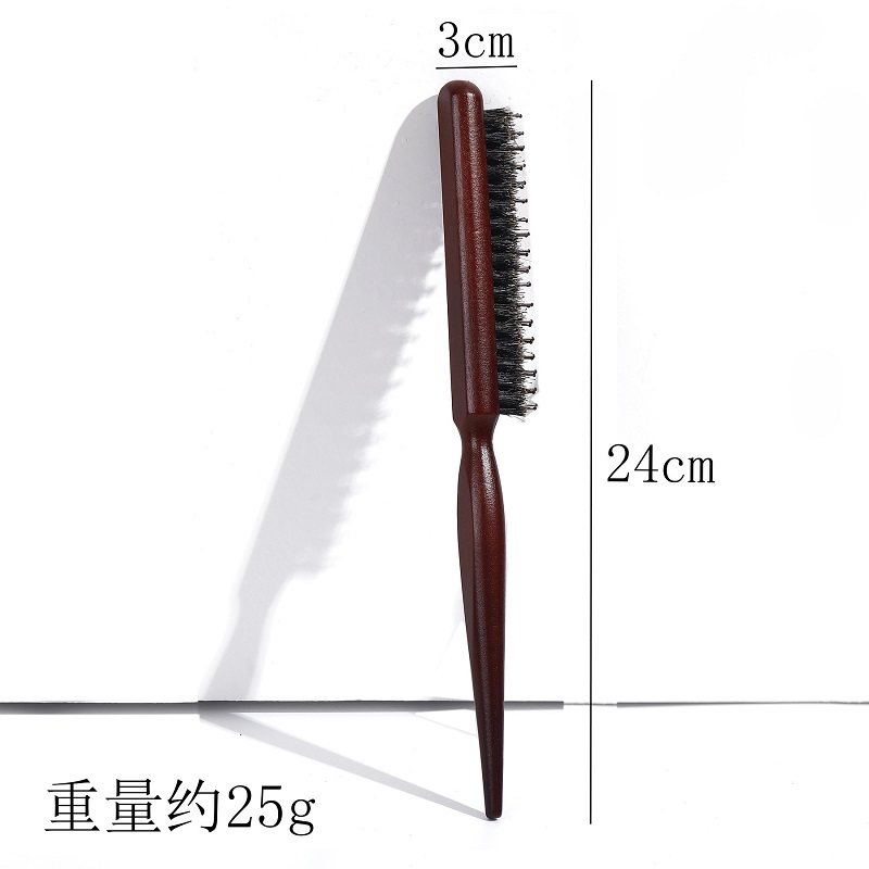 猪鬃毛窄齿梳美发三排打毛梳子蓬松造型长柄化妆尖尾盘发卷发木梳
