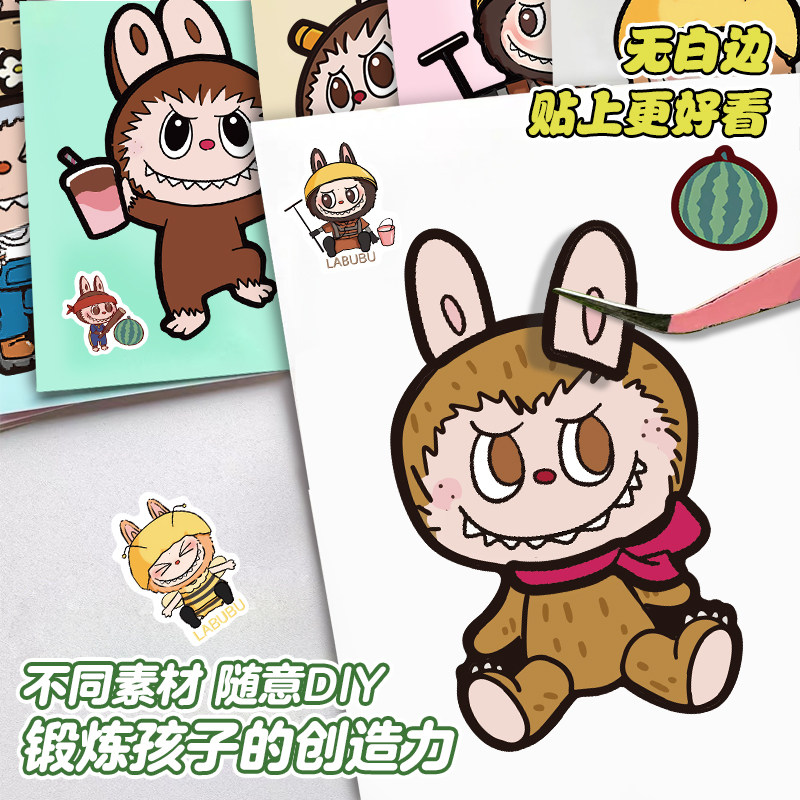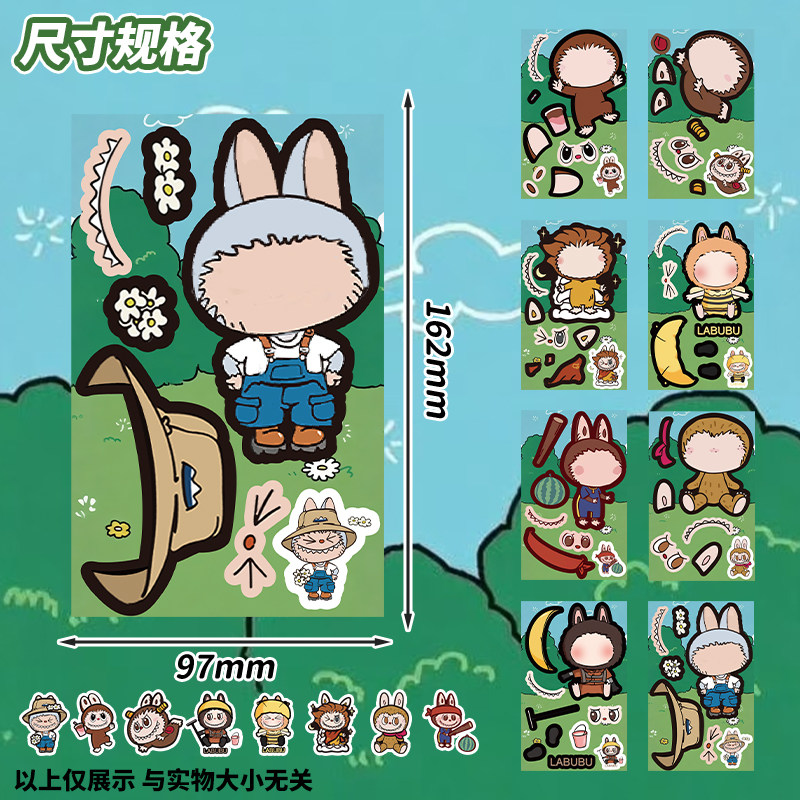 拉布布换装拼图贴纸可爱卡通儿童女孩益智创意玩具幼儿园手账装饰手工diy防水贴画