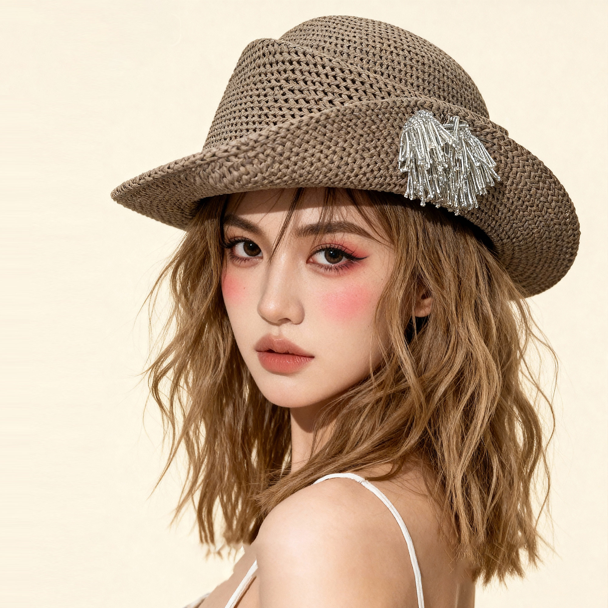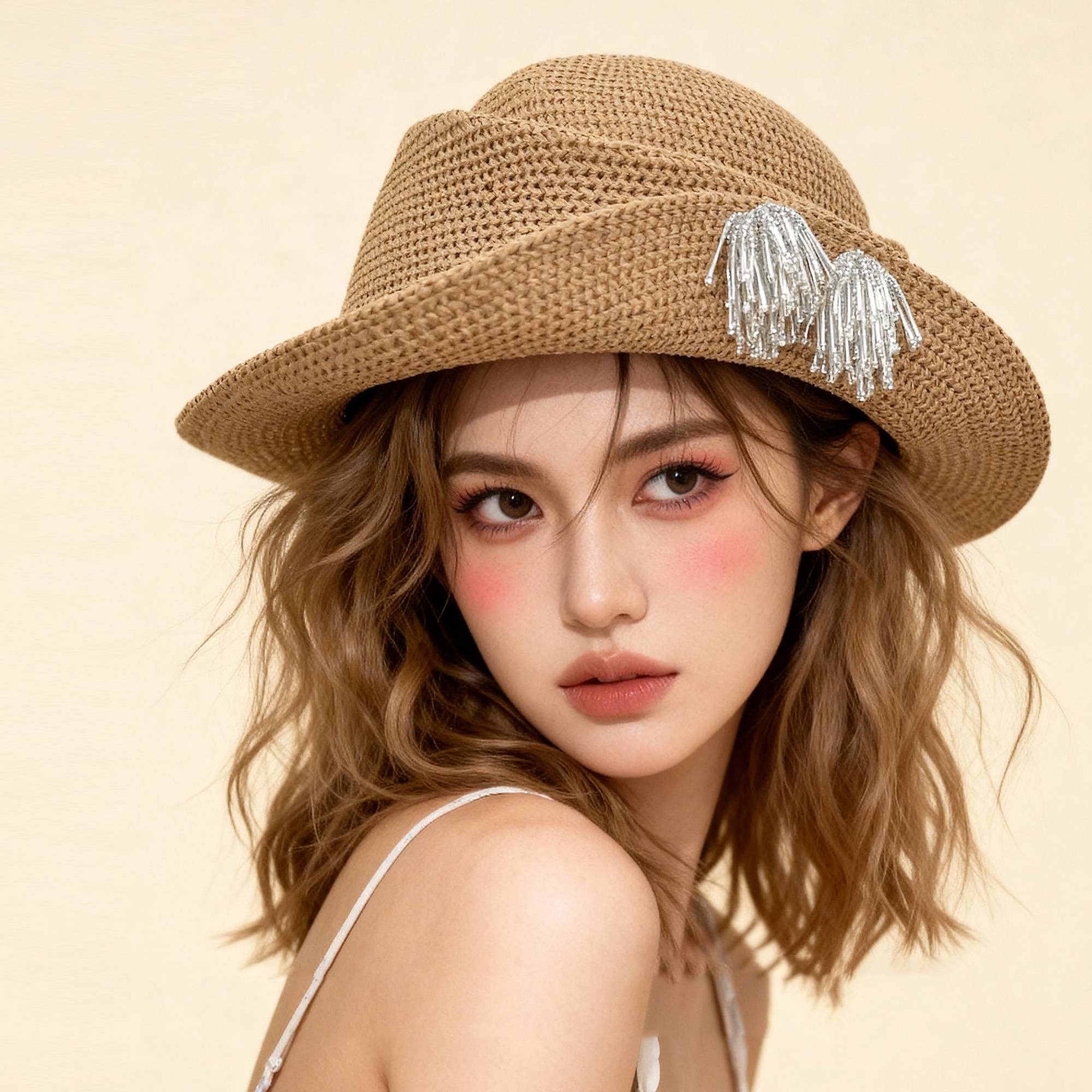 Classy key新加坡设计师联名款复古烟花草帽子遮阳防晒出片礼帽潮